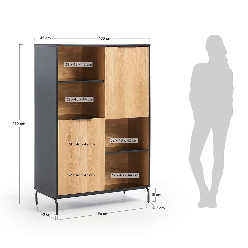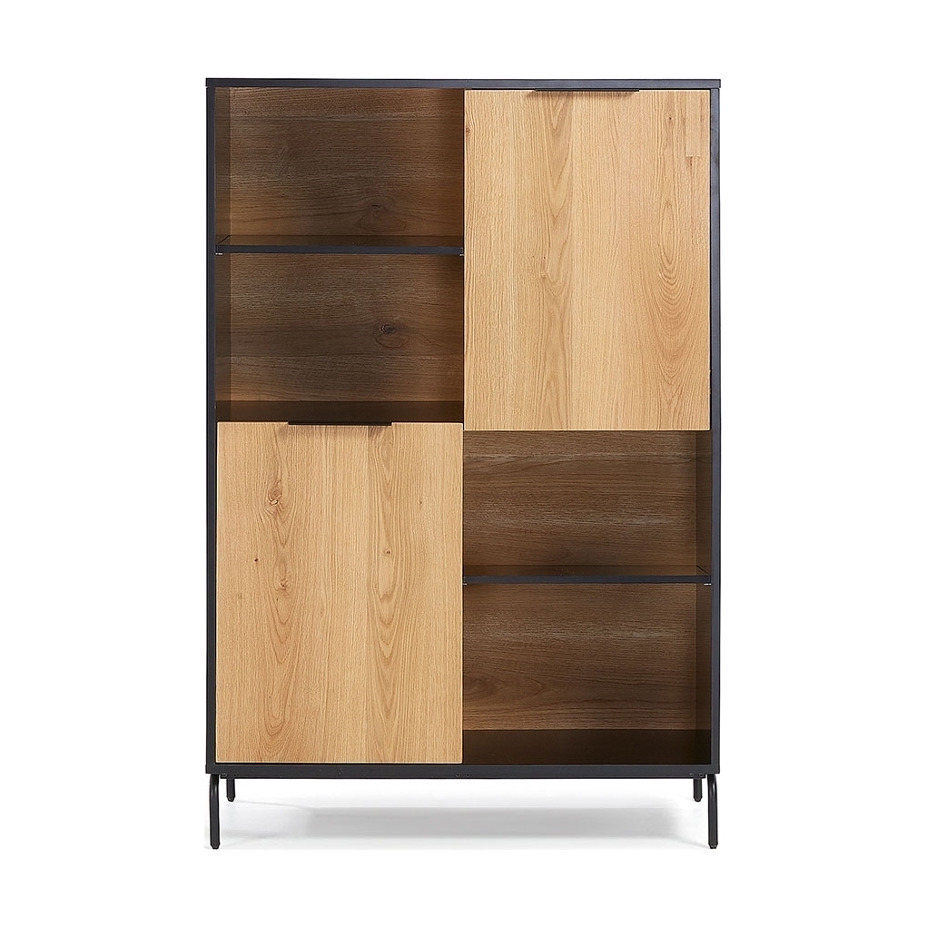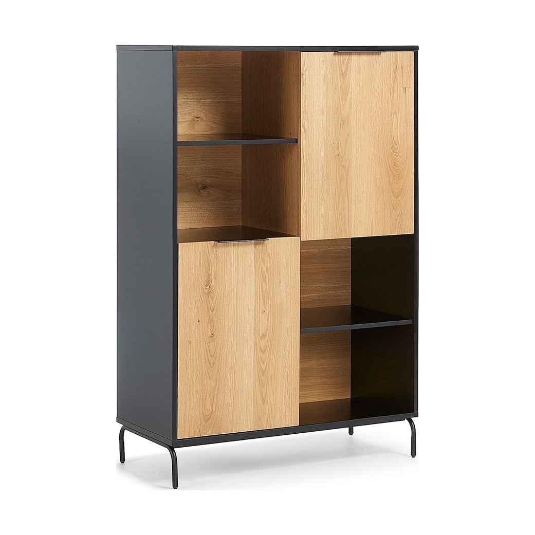 Keep your collection of hardcovers and paperbacks inside the Savoi Bookshelf in Oak Veneer. After all, your favourite read deserves a good home! Not just for literature; store vinyl records, movies, photo frames and decorations in each of the bookcase compartments. Designed with 2 closed cupboards, even the knick knacks you'd rather hideaway can be kept neat and tidy. Finished in black with gorgeous Oak veneer doors and metal details, the contemporary cabinet will bring a touch of industrial styling to your home. Perfect in the home office, living room or bedroom; complete the look with the matching pieces from the La Forma Savoi range.