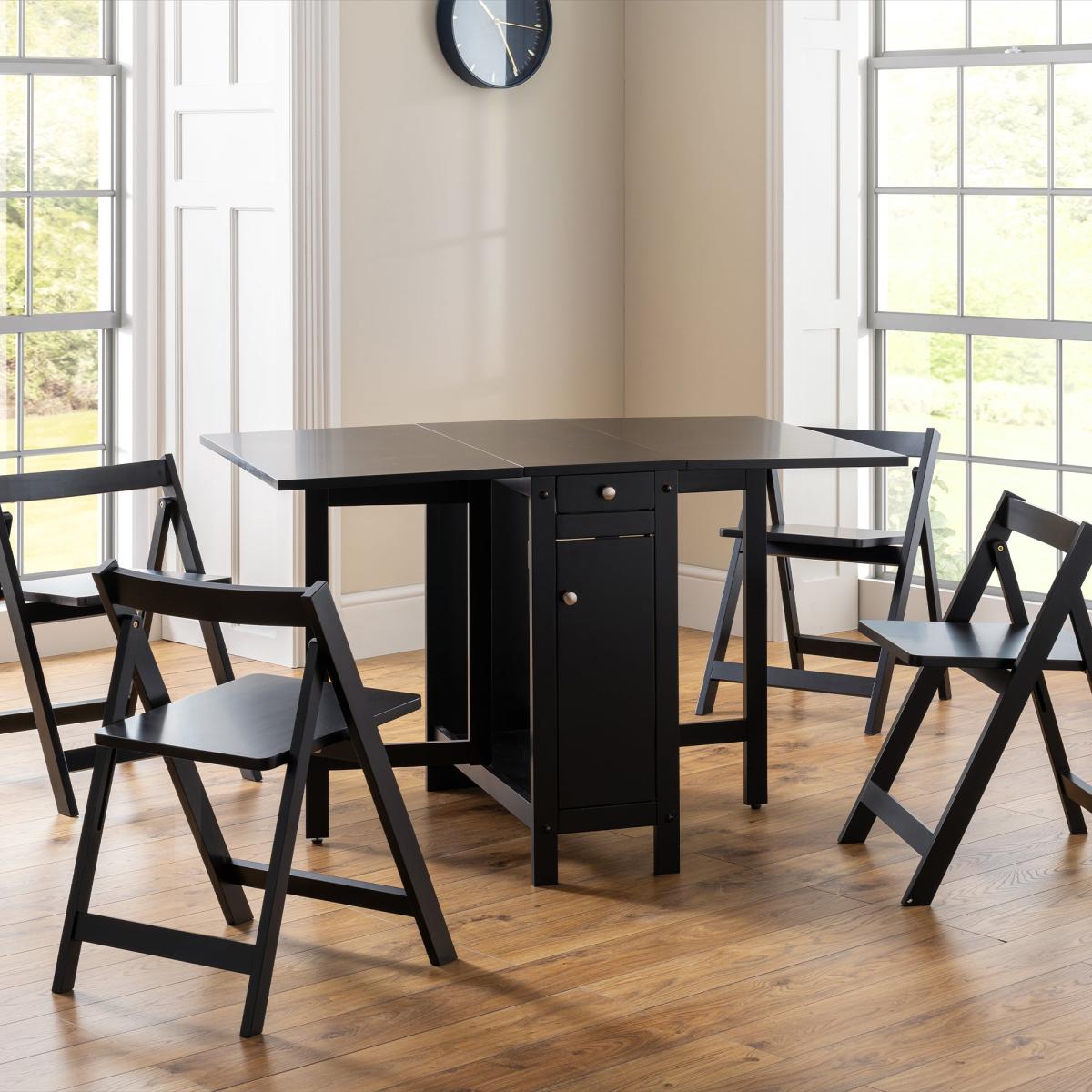 Ideal for the more compact spaces, the Savoy Dining Set is both practical and stylish. This table neatly tucks away saving space in the home and when extended comfortably sits four diners and has extra storage space. With its rubberwood construction and lacquered finish, this set is sure to stand the test of time. Please note, unfortunately we cannot deliver this item to the Channel Islands.