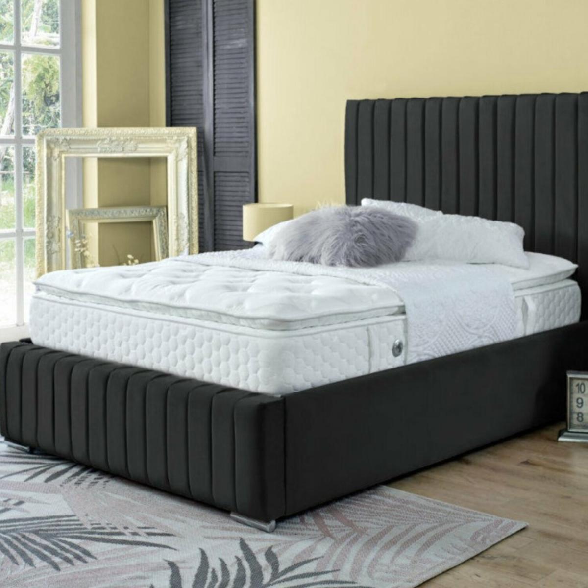 Carefully handcrafted in Yorkshire, the heart of UK manufacturing. All our bed frames are upholstered to a high standard and finished in a super soft touch velvet fabric, to ensure durability and luxury at the same time. The contemporary panel design headboard makes a sophisticated statement to add that finishing touch. Available in a variety of fabric colours to complement your existing decor and bedroom colour palette. Fittings and fixtures are included, meaning there is only minimal assembly required. Disclaimer - All measurements are approximated and have been rounded to the next whole unit.
