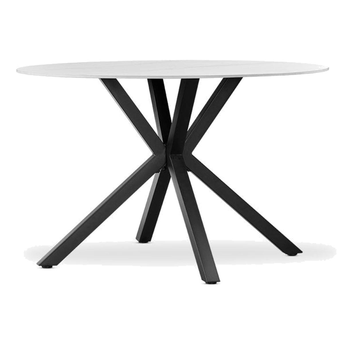 Comfortably sitting 4 people, the blend of raw materials mixes contemporary industrial design with everyday dining for a modern dining table built to last. The Sawyer Round Dining Table in White features sculptural starburst metal legs in black that offer stability and maximise legroom whilst the luxurious white tabletop is made from smooth and durable ceramic; low maintenance in a contemporary modern design.