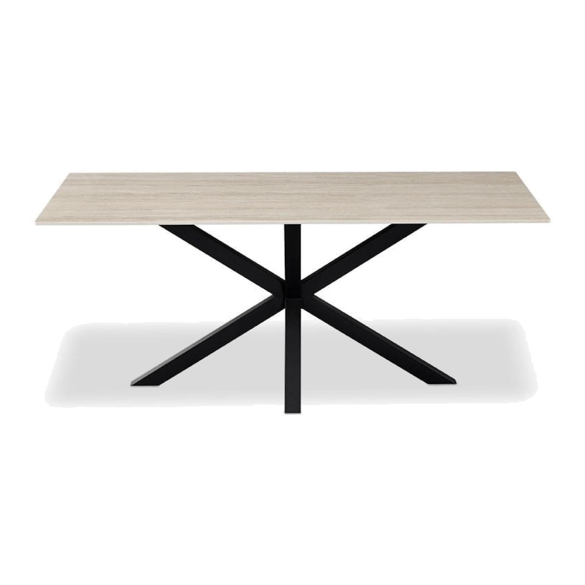 The blend of these materials mixes industrial design with everyday dining for a modern dining table built to last. Comfortably sitting 6 people, the Sawyer Dining Table features sculptural starburst metal legs in black whilst the travertine effect tabletop is made from smooth and durable ceramic; low maintenance and durable in a contemporary modern design. View The Sawyer Range