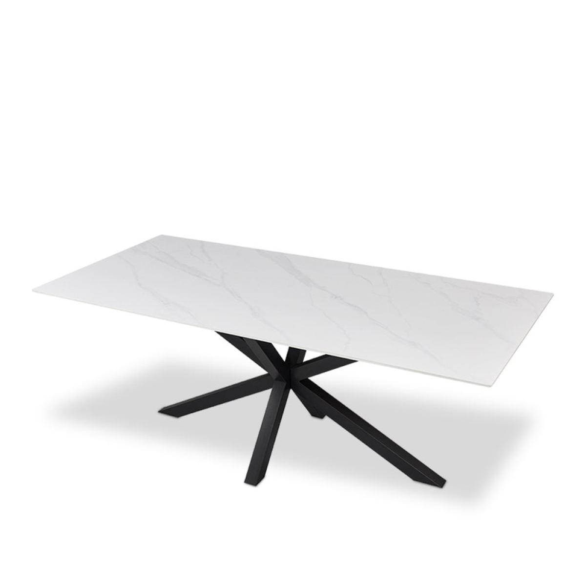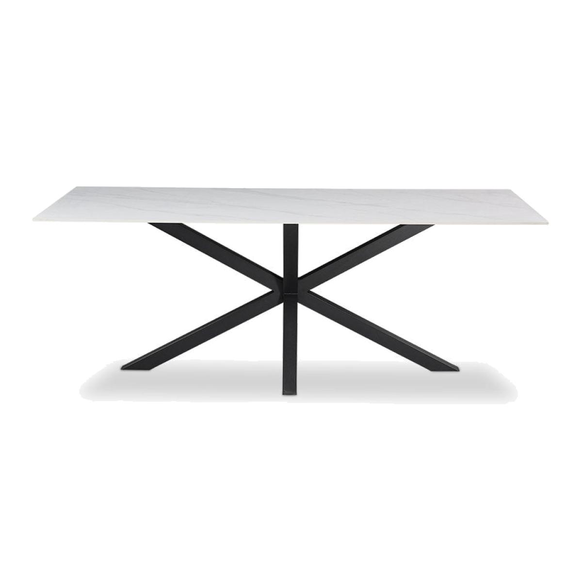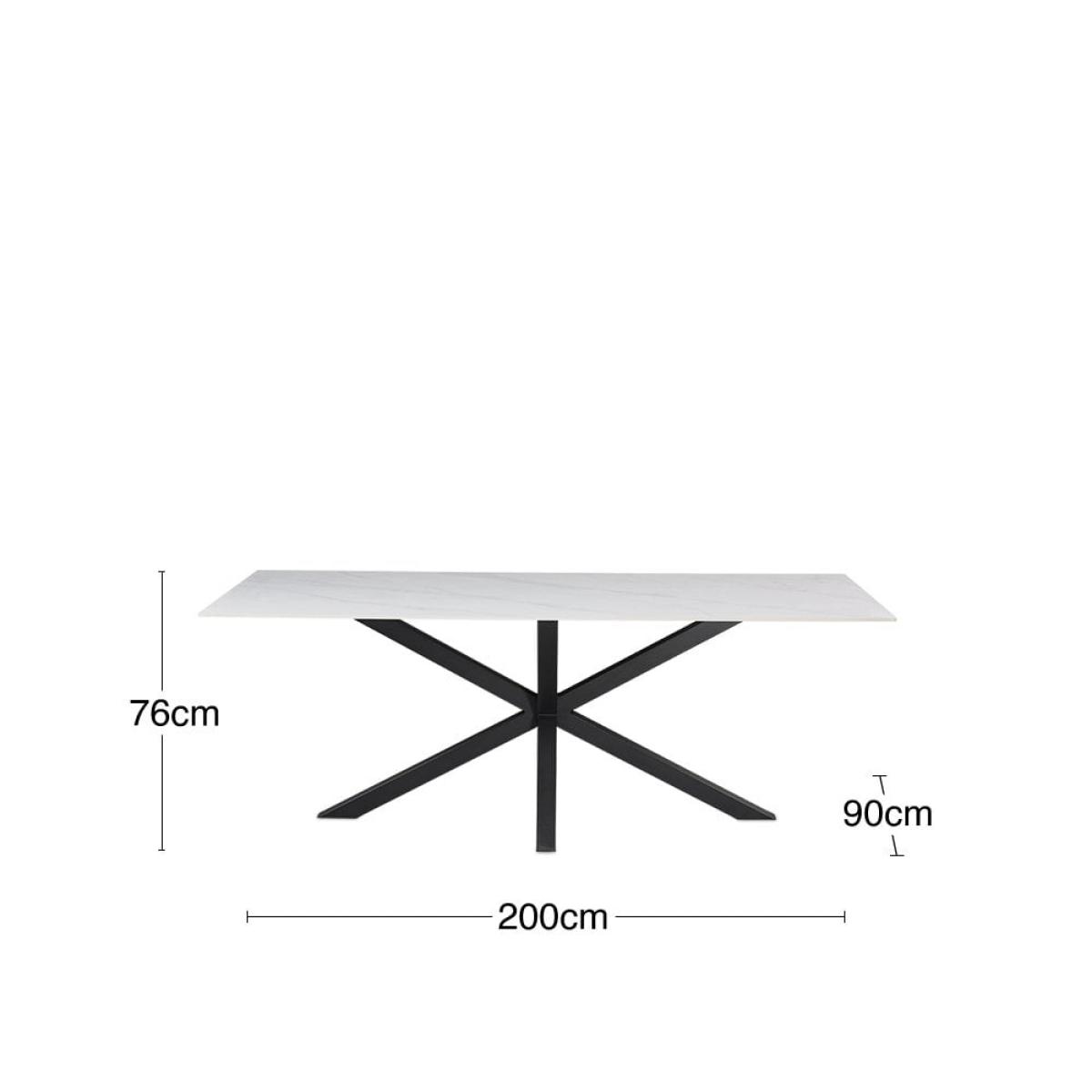 Comfortably sitting 8 people, the blend of raw materials mixes contemporary industrial design with everyday dining for a modern dining table built to last. The Sawyer Dining Table in White features sculptural starburst metal legs in black that offer stability and maximise legroom whilst the matte white surface is made from smooth and durable ceramic; low maintenance in a contemporary modern design.