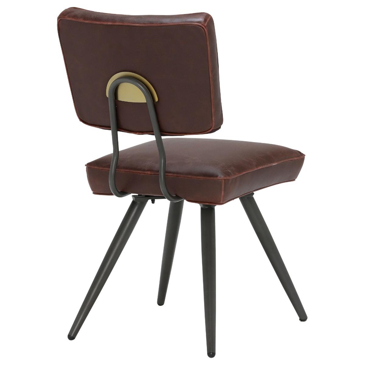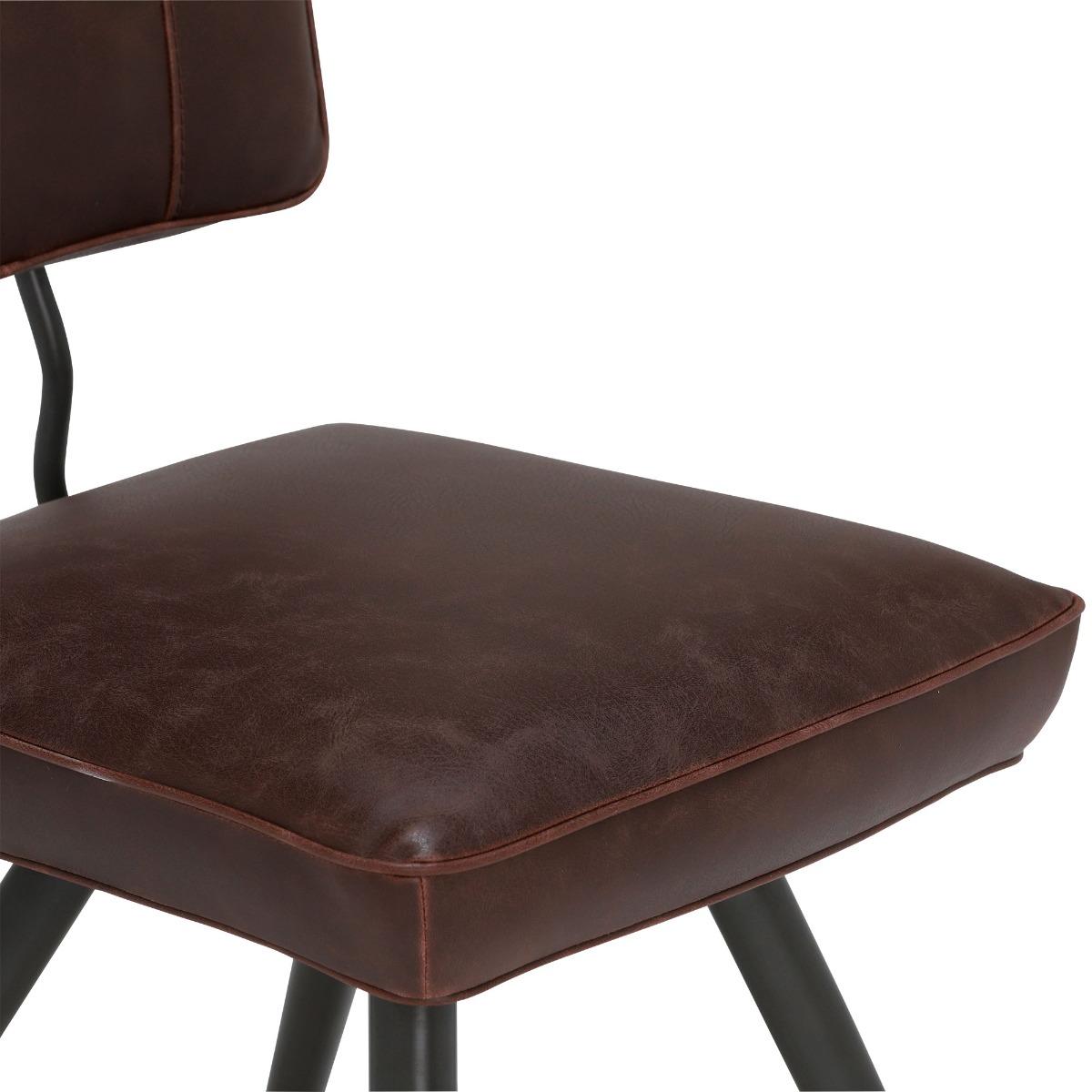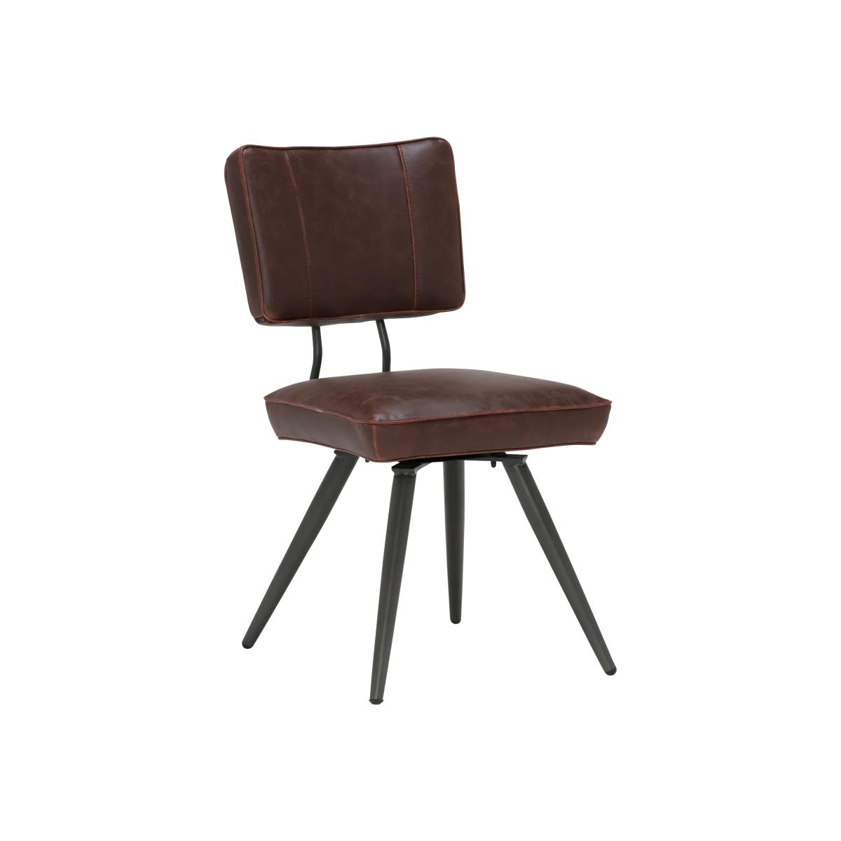With its black metal frame and realistic faux leather upholstery, the Sawyer dining chair is a modern industrial piece that looks great in a wide range of settings. Stylish exposed stitching and splayed legs comprise the finer details, while generous foam filling ensures a comfortably cushioned sit. This distinctive dining chair will not disappoint.