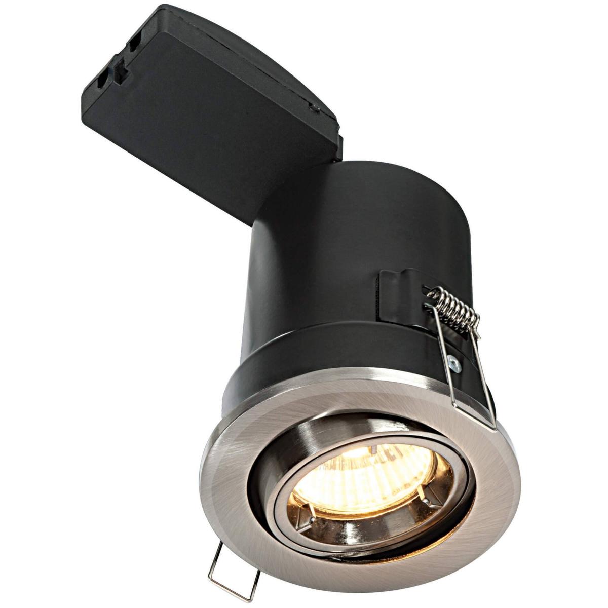 Modern downlighter boasting a satin nickel finish. Stylish addition to your home, this downlighter is part of the Shield Plus range from Saxby Lighting. Boasting a satin nickel finish throughout, this dimmable fitting has a simple design, making it perfectly adaptable to any living space. The spotlight comes complete with an adjustable lamp head which can be tilted up to 30 degrees. It is ideal for lounges, hallways, dining rooms and bedrooms.