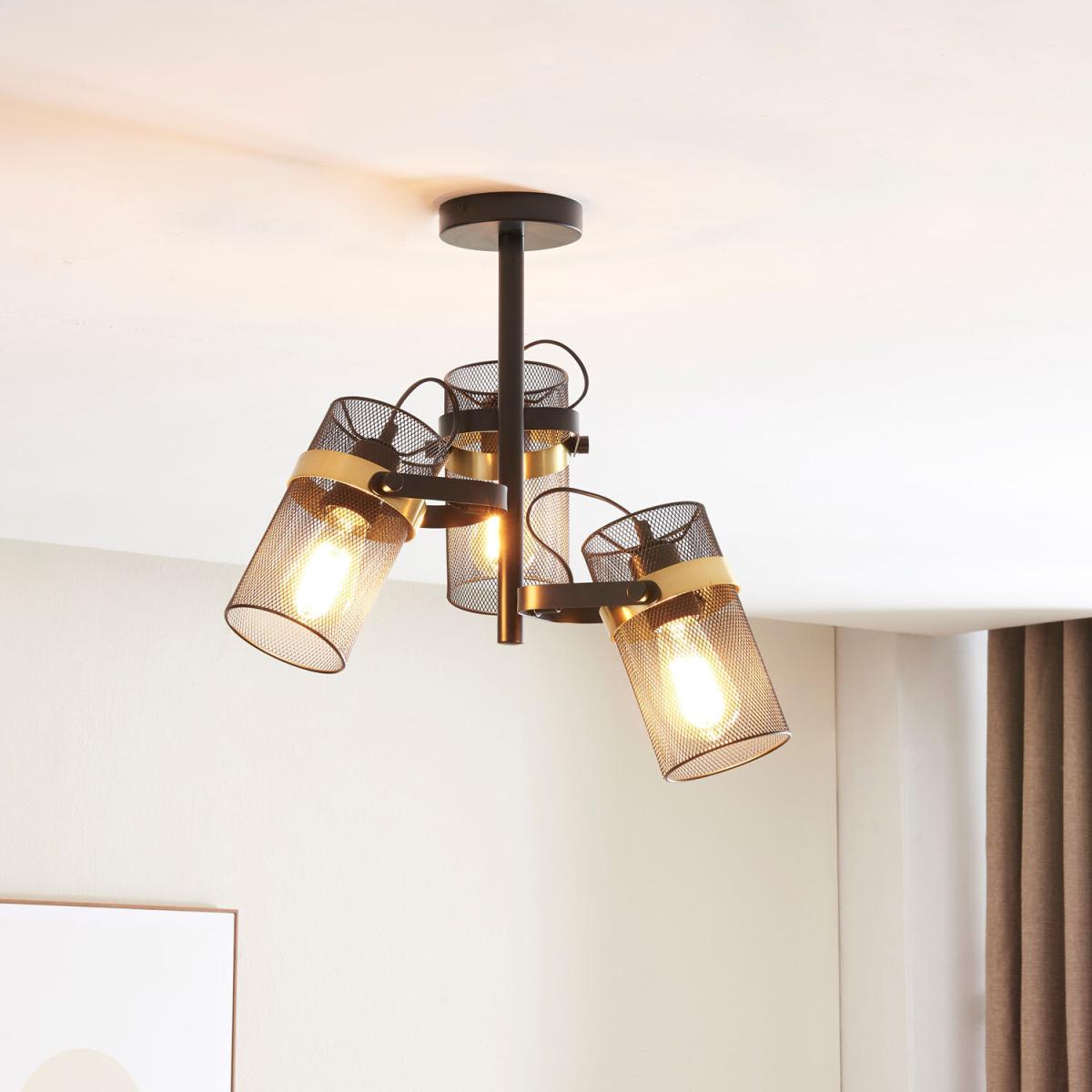 This striking industrial-style Saxon 3 Light Ceiling Fitting features metal mesh cages with a stylish gold surround to create an attractive urban lighting solution. This metal ceiling light is perfect for placing over your kitchen counter or dining table to illuminate your room with a warm and cosy glow for all to enjoy.