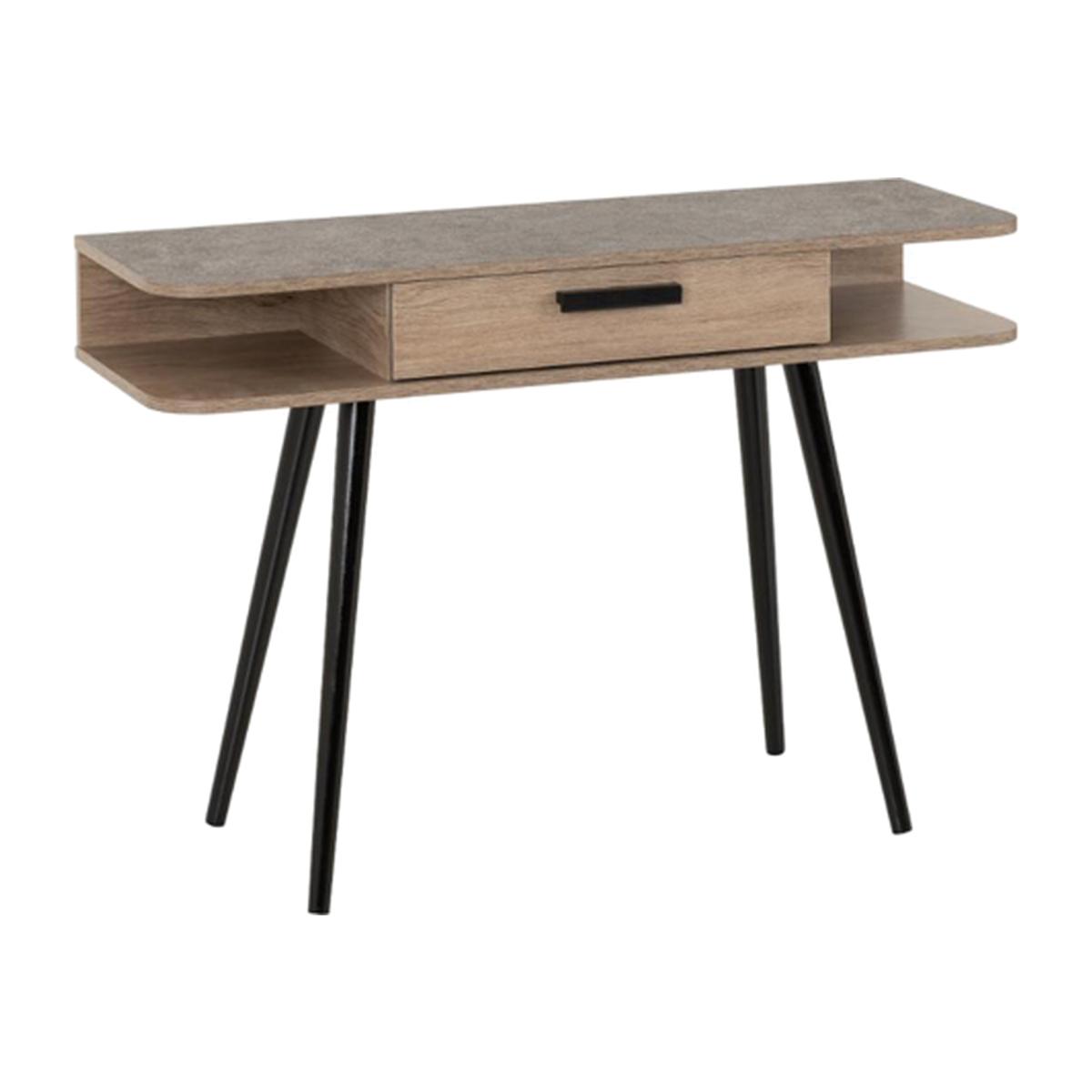 Upgrade your living space with the Saxton 1 Drawer Console Table, boasting a medium oak effect finish paired with a sophisticated grey concrete effect top. This industrial-chic masterpiece is adorned with sleek black metal hardware, adding a touch of modern elegance to your home. The contemporary design not only enhances your decor but also provides practicality with a convenient drawer for storage. UK Mainland delivery only, between 9am - 9pm (weekdays) the courier will contact you on the day of delivery to offer a time slot. This takes place within 10 working days (Ground floor only). Please also ensure that we have a note of your up-to-date address and contact information, including daytime phone number and email address to be passed to the couriers.