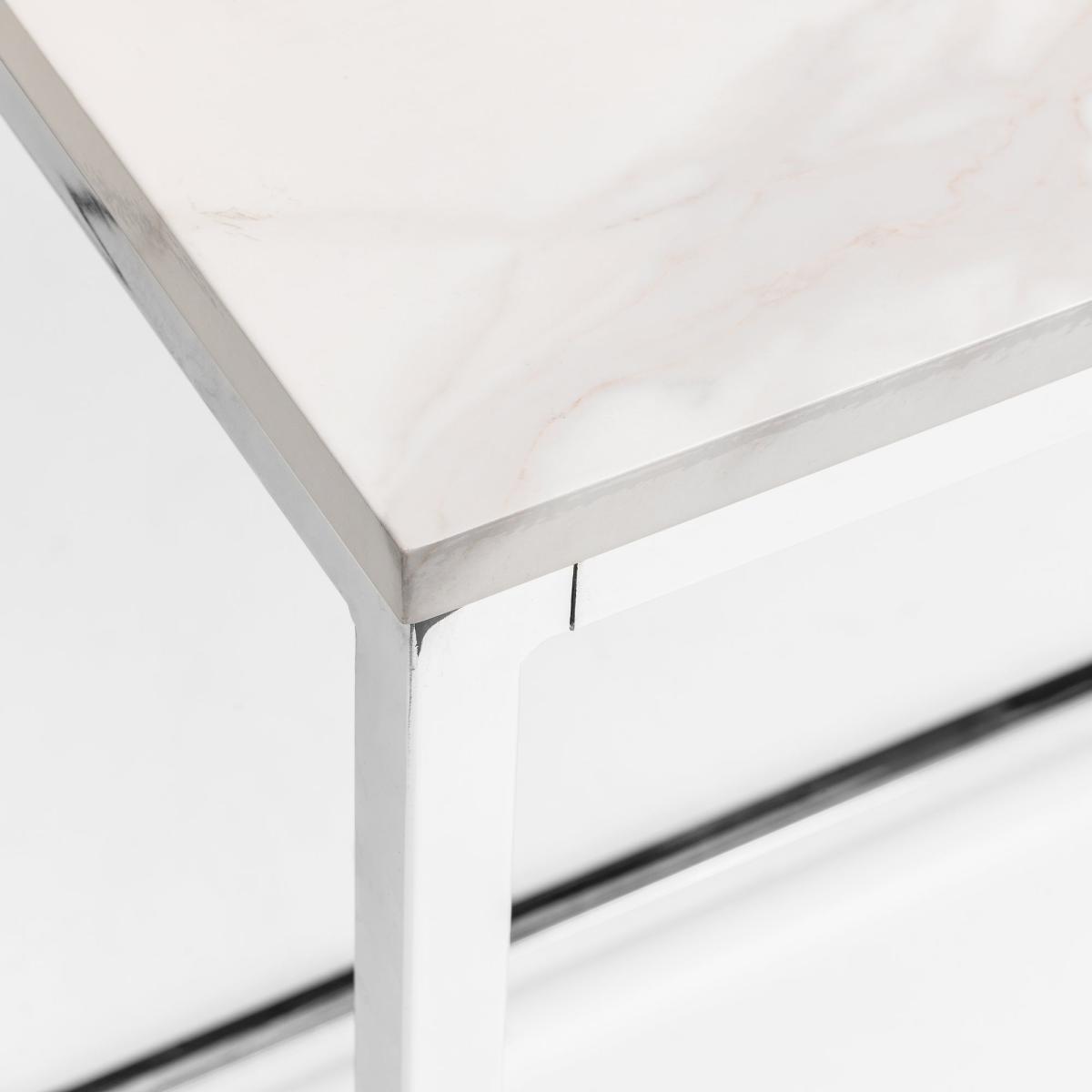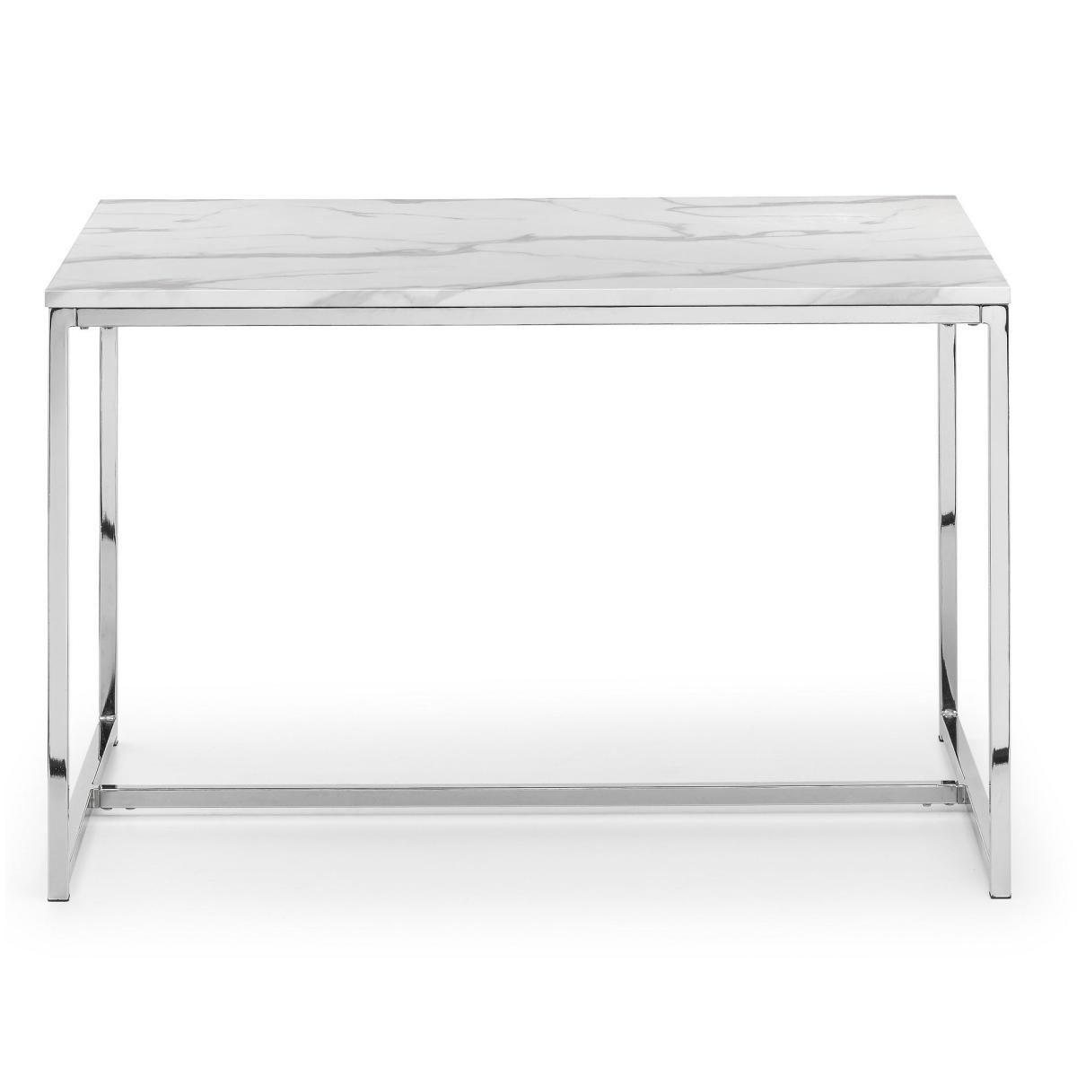 * Elegant dining table* Marble effect top* Gold, chrome plated steel frame* Modern, chic design* Seats up to 4 people Meet Scala, a sharp, sleek and sophisticated dining table that’ll be the talking point at every dinner party. Made from marble-effect top over a gold-chrome plated steel frame. It seats 4 people comfortably, perfect for smaller households.