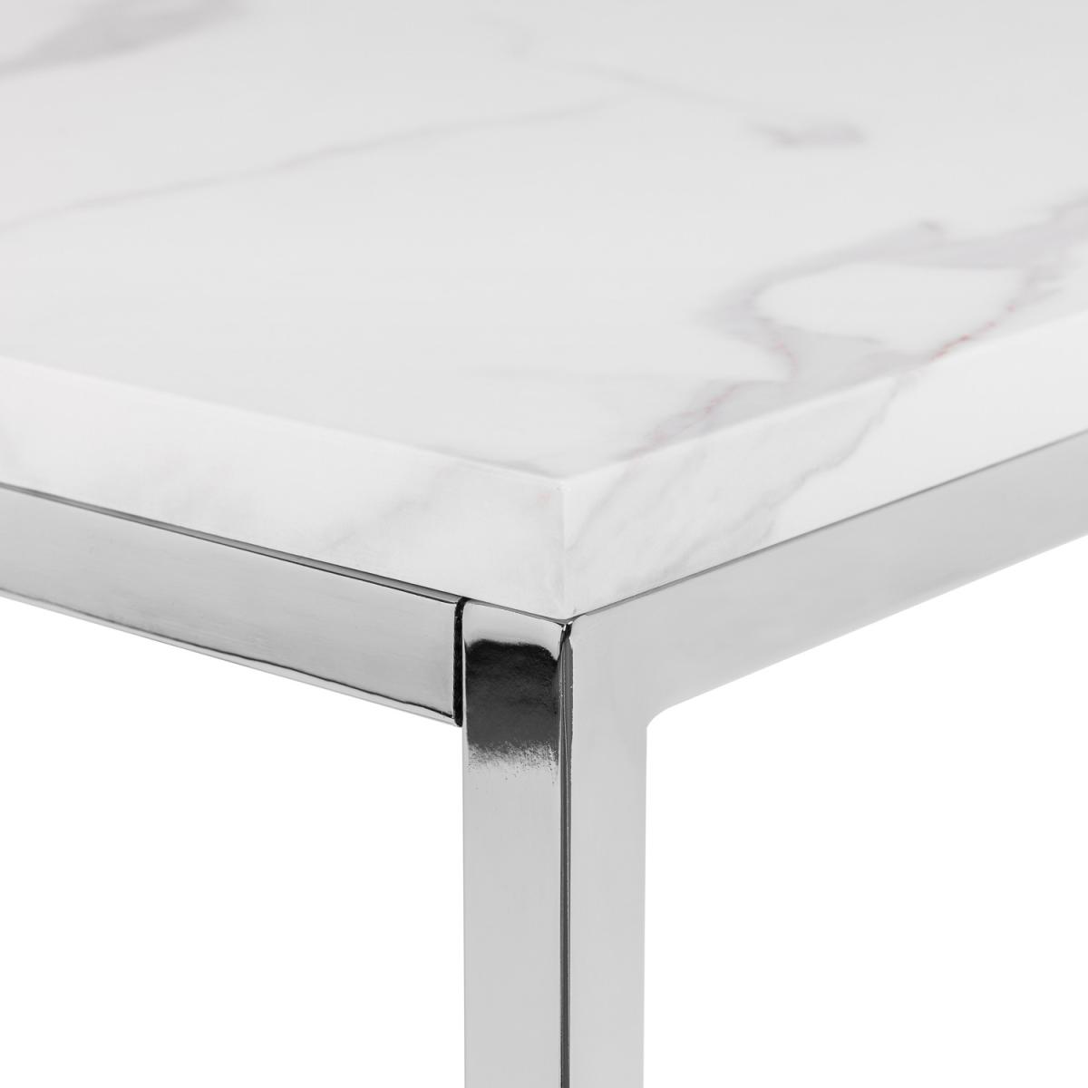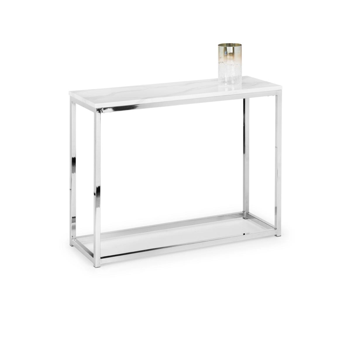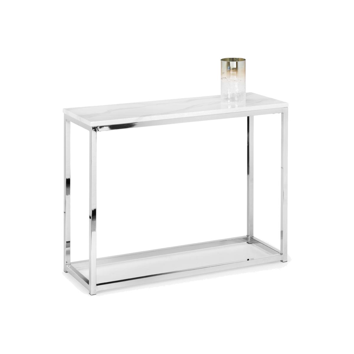 Scala is a sleek console table with chic marble effect top on a well-crafted stainless steel frame. It has a timeless Italian design that fits well with a wide range of decorative styles. Part of the Julian Bowen Scala Occasional furniture range.