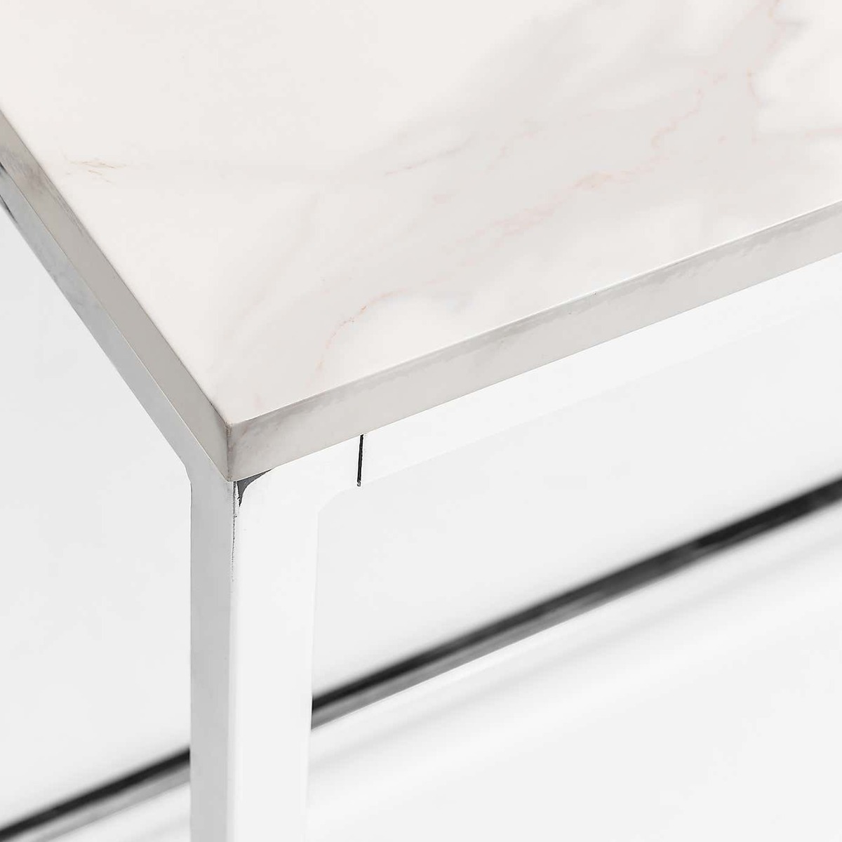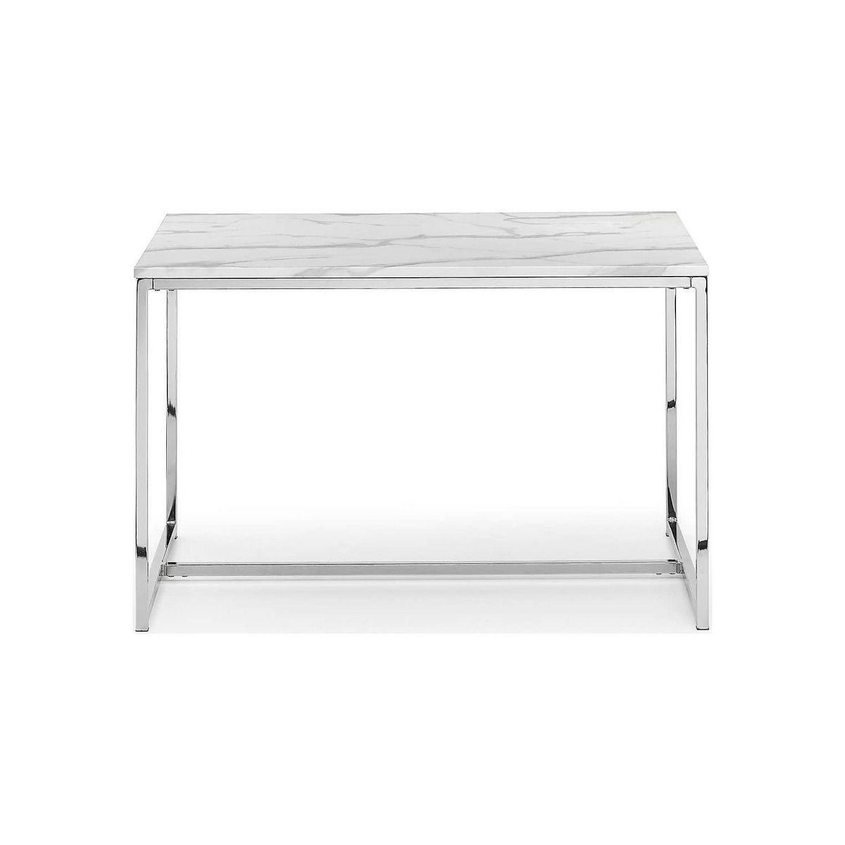 Modern marble effect top suitable for any contemporary space fit with a chrome plated steel frame ensuring durability. Featuring timeless, Italian design making this piece suitable for a wide range of decorative styles.