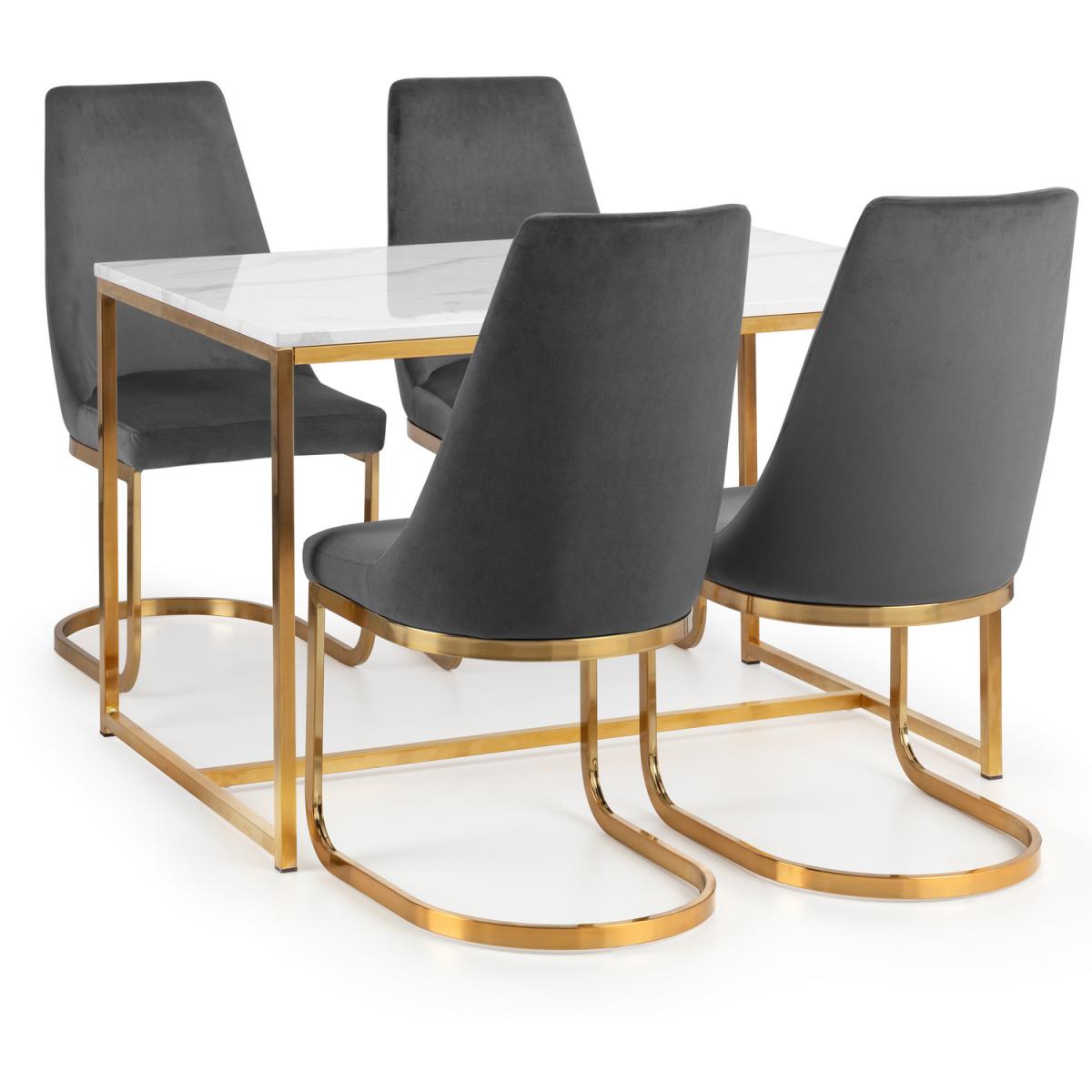 Scala Gold Table and Vittoria Chairs Set - Grey