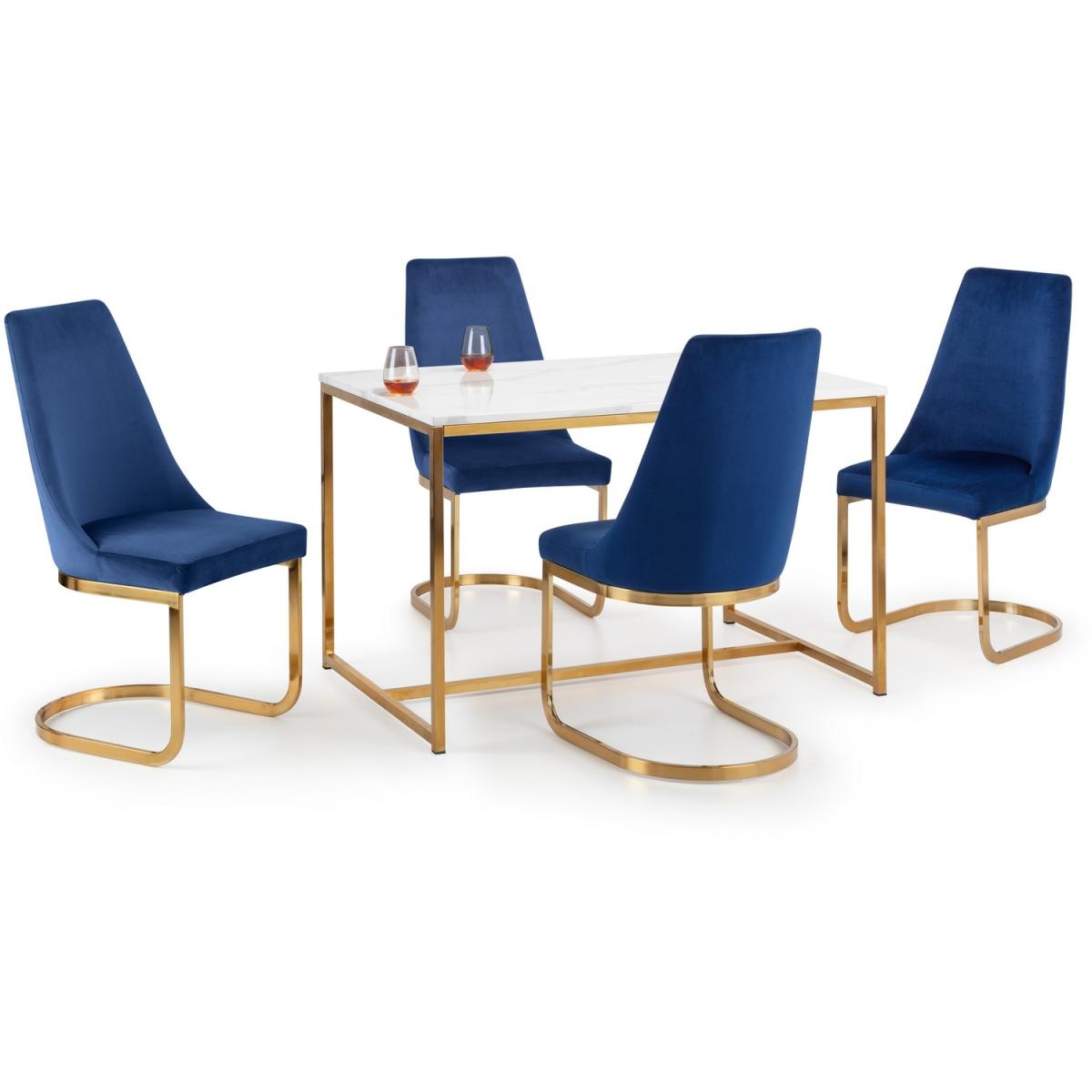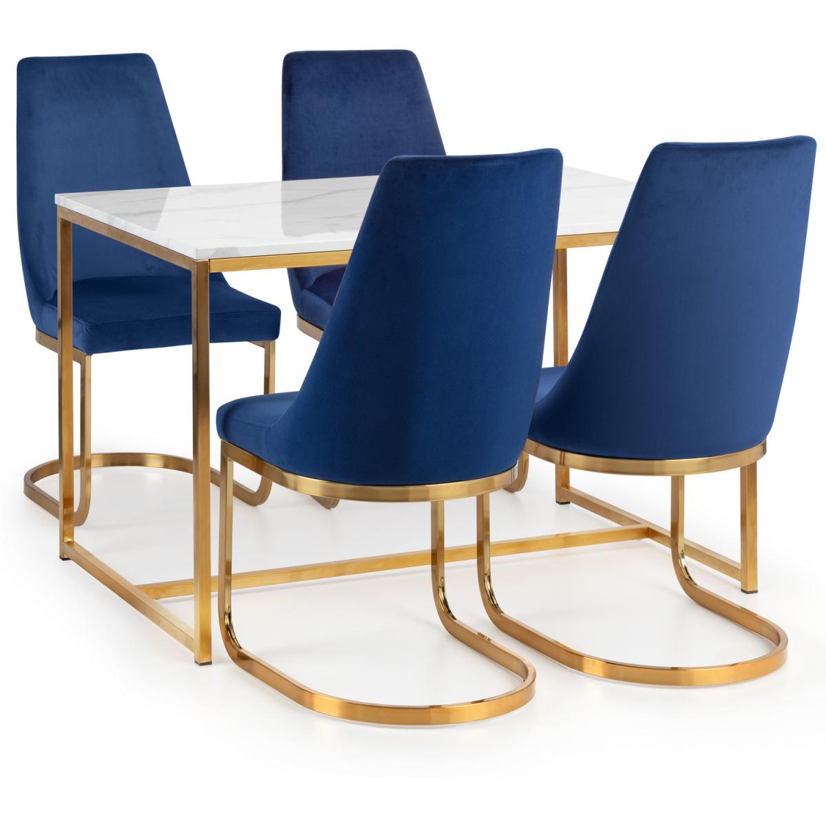 Scala is a sleek dining table with chic marble effect top on a well crafted gold coloured, stainless steel frame. It has a timeless Italian design that fits well with a wide range of decorative styles. Part of the Julian Bowen Scala Dining and Occasional furniture range. Partnered with Vittoria Chairs.