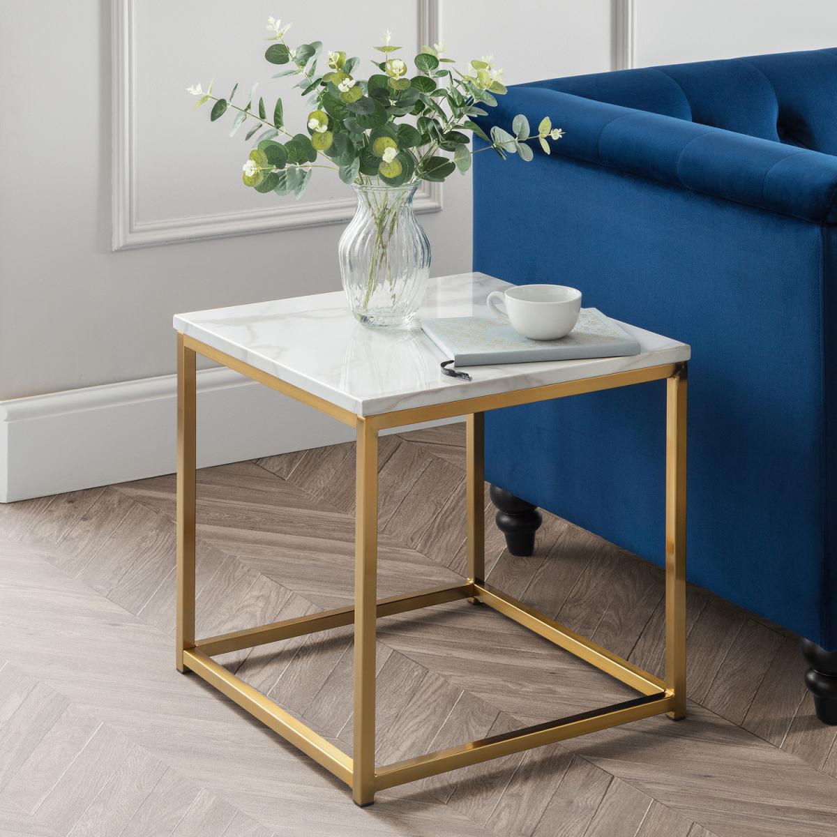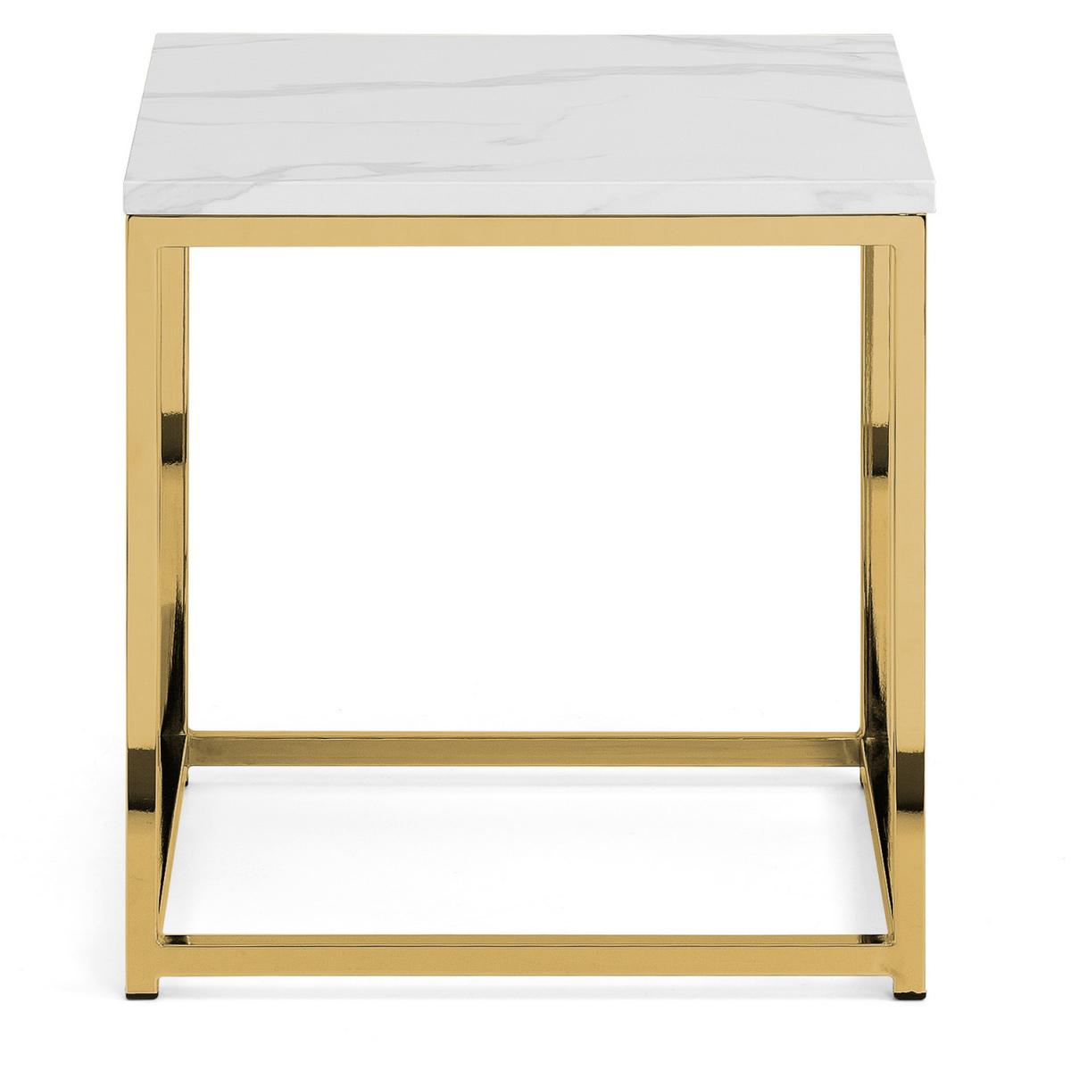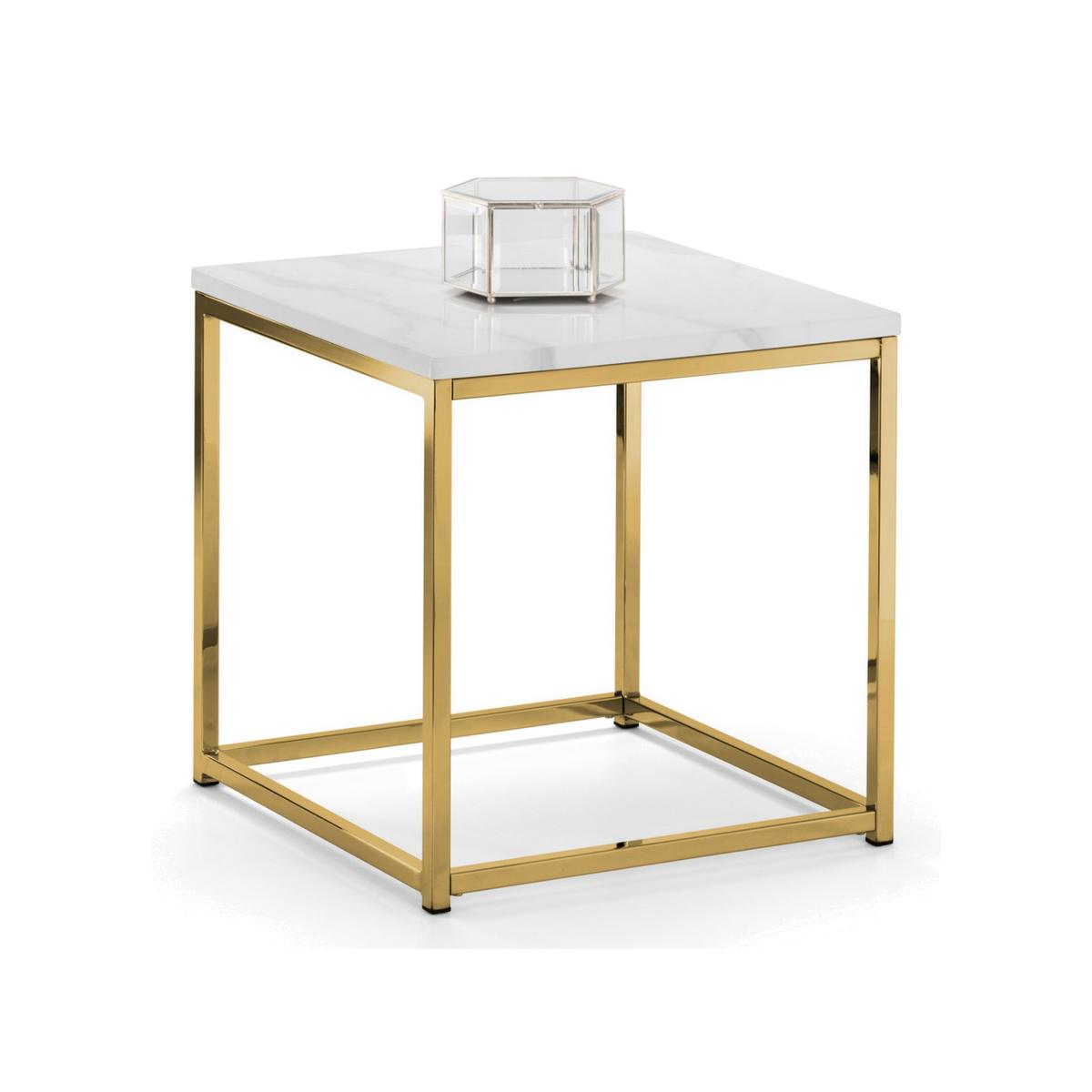 Scala is a sleek lamp table with a chic marble effect top on a well-crafted gold-coloured, stainless steel frame. It has a timeless Italian design that fits well with a wide range of decorative styles. Part of the Julian Bowen Scala Occasional furniture range.