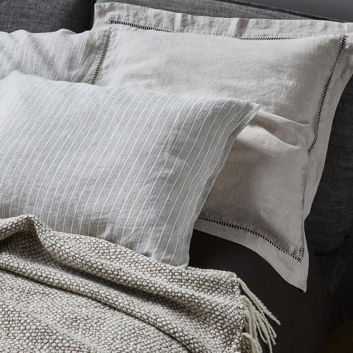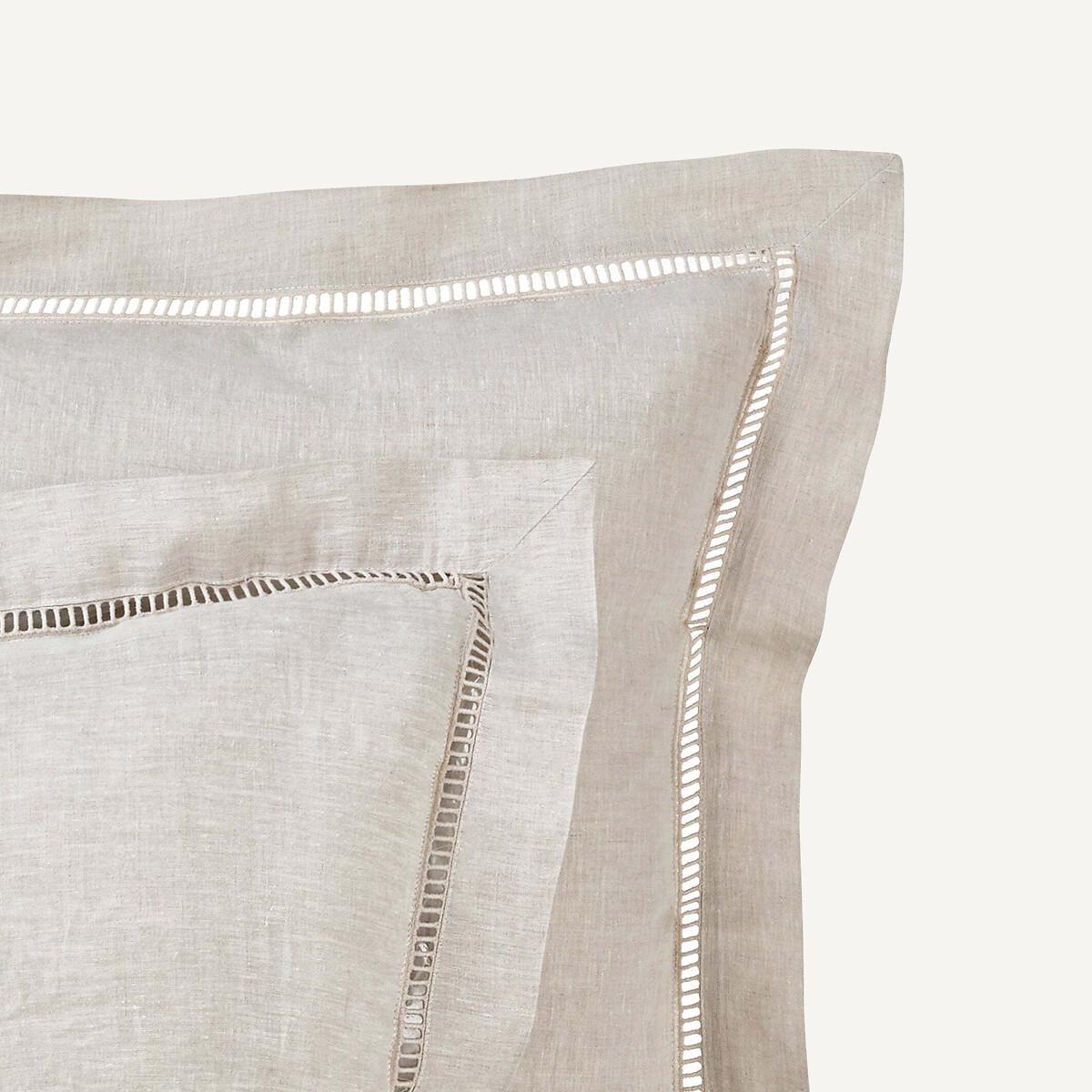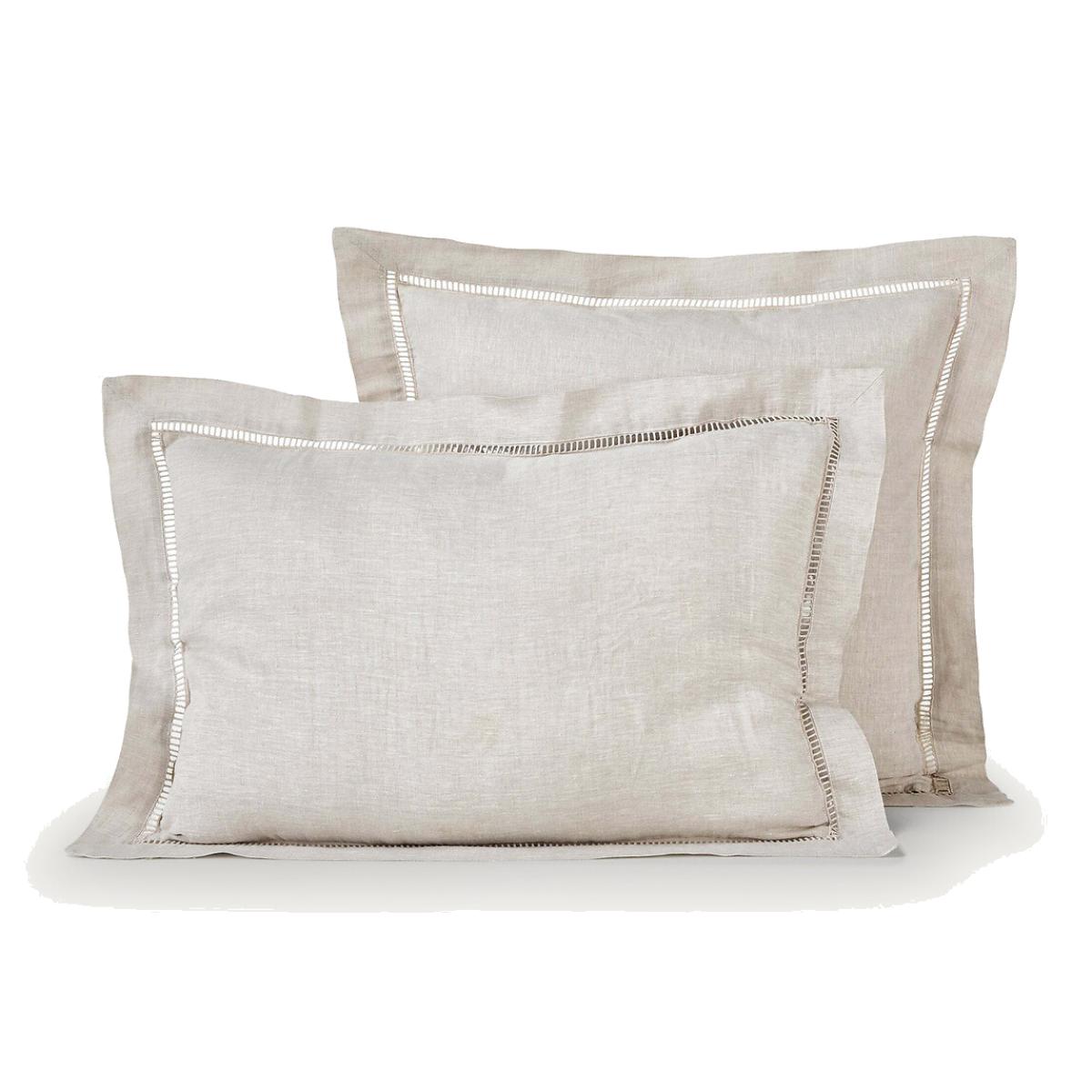 This pillowcase in immaculate washed linen has been enhanced with a delicate ladder finish in the spirit of fine vintage linen. A unique blend of authenticity, comfort and elegance, linen is fresh in summer and comfortable in winter.. Grown in Europe, washed linen is easy to live with and slightly wrinkled since it does not iron. Washed for more softness, it becomes more tactile and more beautiful wash after wash.. Product Details • 100% linen • Washed linen • 200 thread count: a common indicator for measuring the quality of fabric is the number of threads per cm². Different sensations are made possible thanks to the weaving and the number of threads present. Indeed, an optimal number of threads makes the bed linen particularly soft. Origin • Linen: France • Weaving: China • Finishing: China Care Advice Follow our care tips to maintain the quality of your laundry • Machine washable at 40°C • Tumble dry at low temperature • Iron at high temperature • Do not dry clean. Dimensions • 50 x 70cm: Rectangular pillowcase • 63 x 63cm: Square pillowcase • 85 x 185cm: Bolster case • OEKO-TEX® Standard 100. Standard 100 certification by OEKO-TEX® tests textile products for harmful substances via an independent, international label.