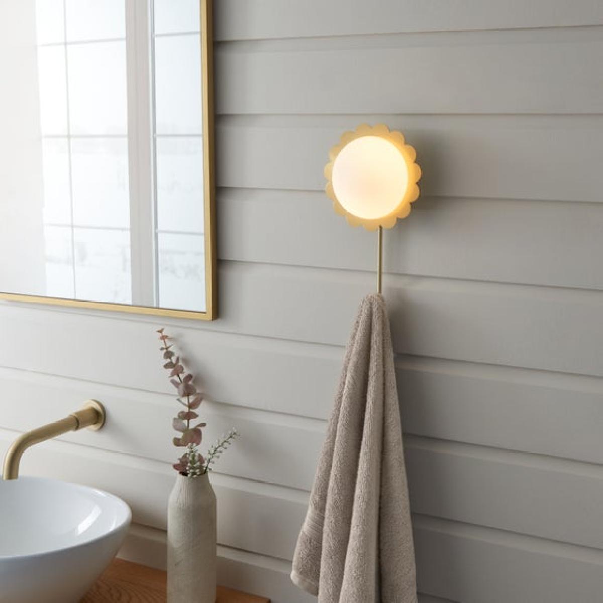 I love this little bathroom hook light for its playful yet functional design. Its scalloped edge adds a touch of visual interest, making it a charming addition to any bathroom. It works particularly well in modern or coastal interiors, where soft curves and gentle lighting create a relaxed vibe. For styling tips, pair it with minimalist accessories to keep the look clean, or add organic textures like wicker baskets or bamboo accents for a more natural feel. Its integrated light source provides functional illumination, while the hook offers added versatility for hanging towels or robes-making it both stylish and practical.