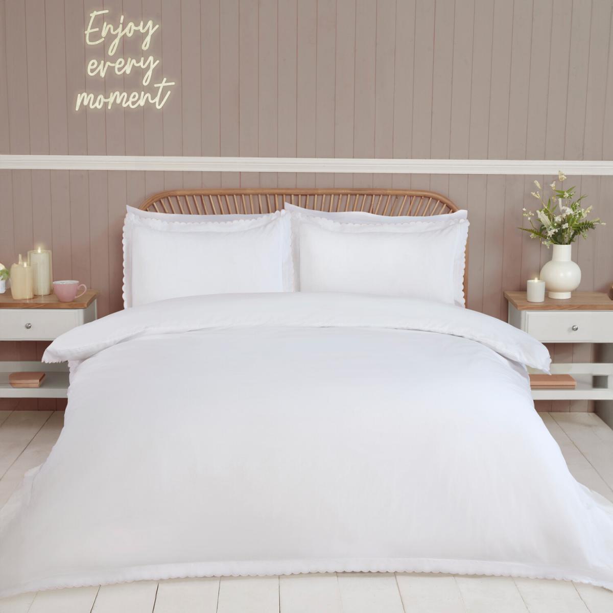 Elevate your sleep space with the Scallop Edge Duvet Set. Designed with a delicate scalloped edge, this set brings elegance and comfort to any space. Made from smooth, comfortable fabric, it feels as good as it looks to enjoy a restful night's sleep. The classic styling pairs beautifully with both modern and traditional interiors.