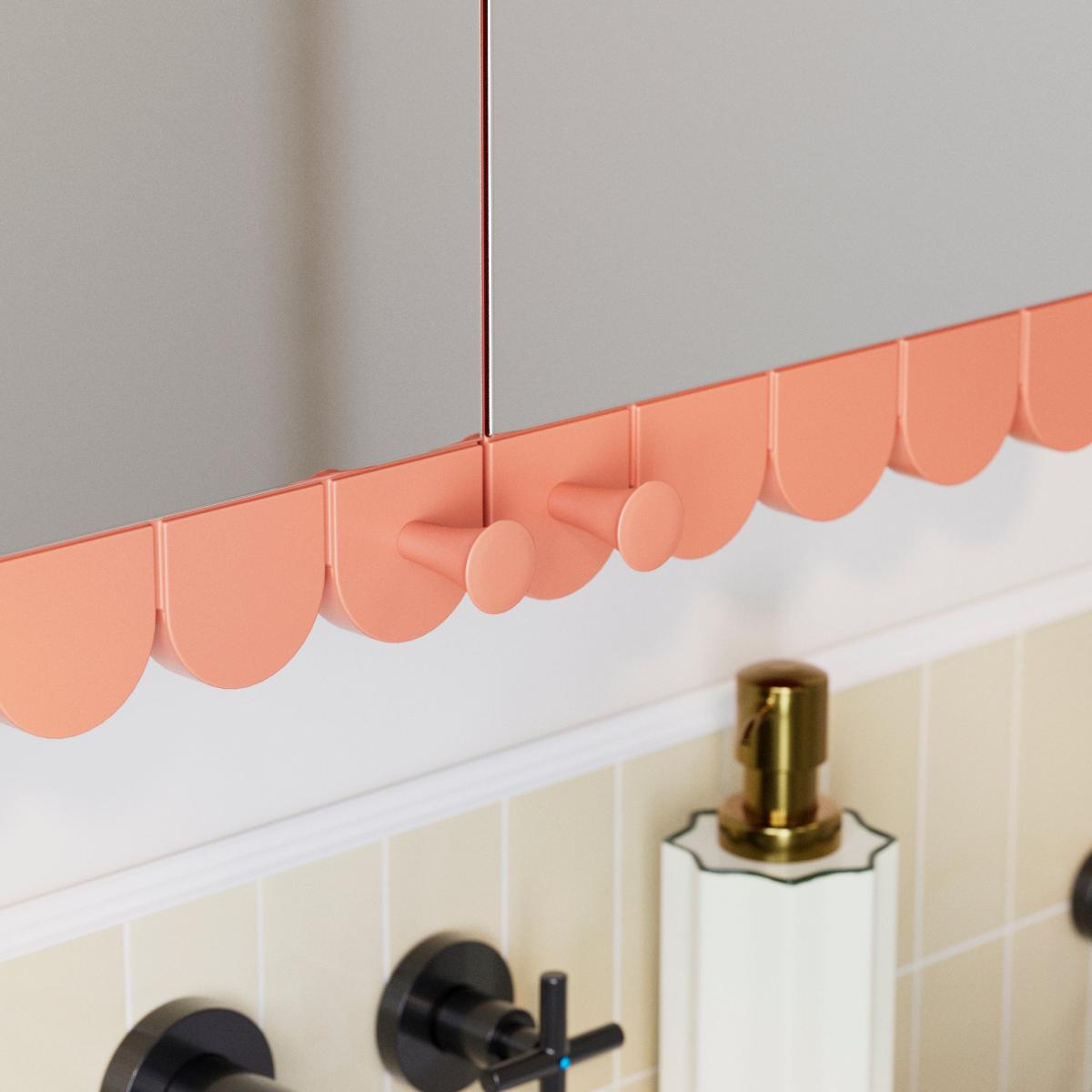 I love this one for its playful, scalloped edge detail which adds a touch of character without overwhelming a space. It works exceptionally well in contemporary and eclectic interiors, especially where a hint of colour is desired. Practical styling tips include using it to store bathroom essentials or small accessories, keeping the interior organised and clutter-free. Pairing it with minimalist hardware and complementary colours elsewhere in the room can help it stand out as a statement piece. Its bright frame also makes it a great way to introduce colour into neutral schemes, making the space feel fresh and inviting.