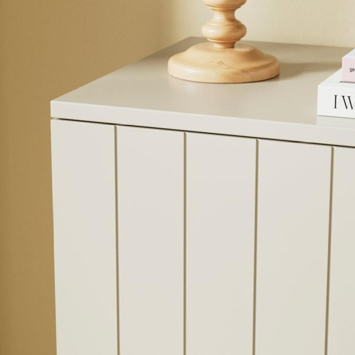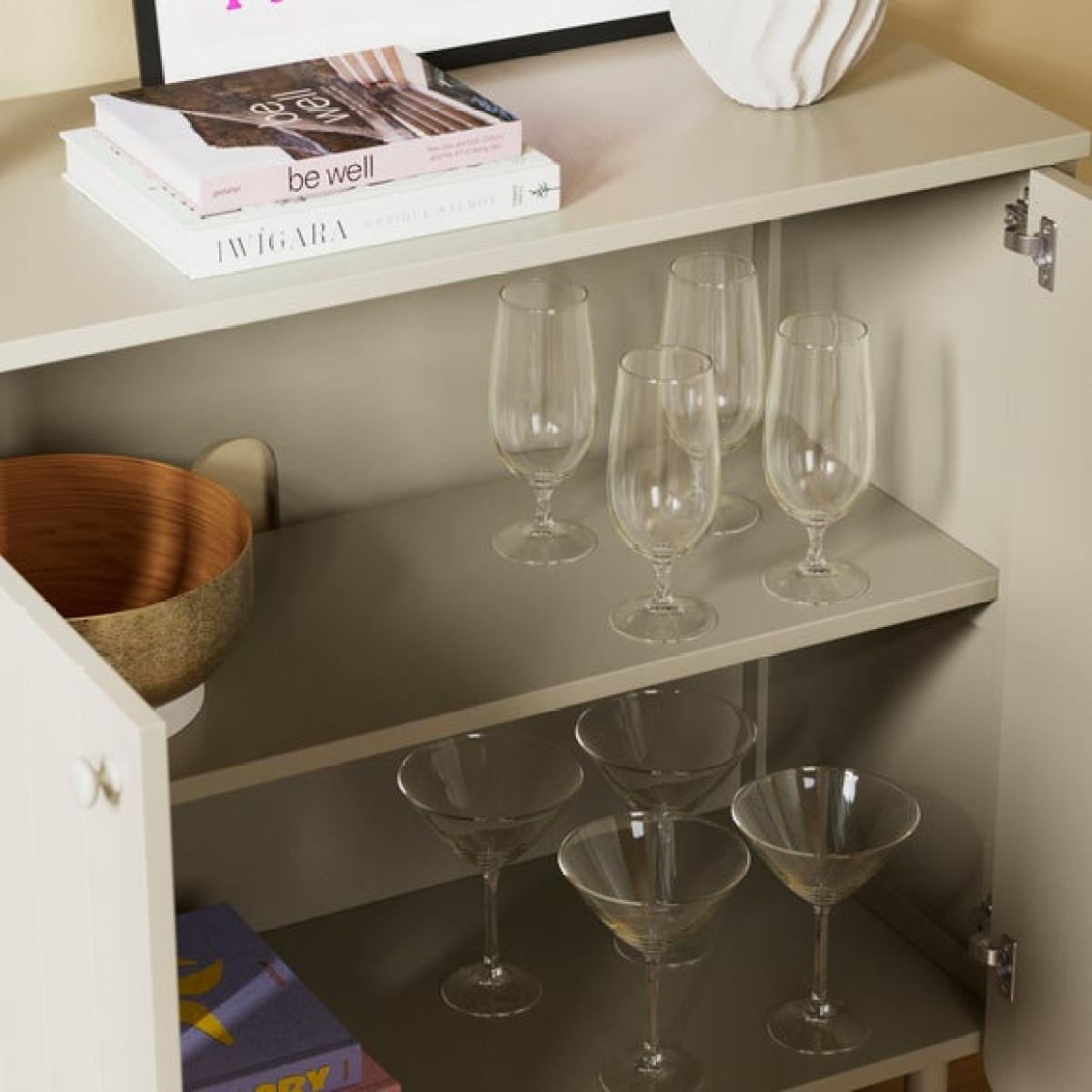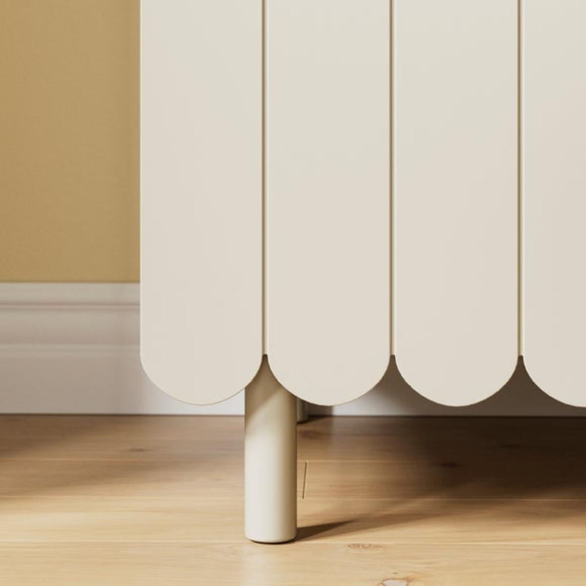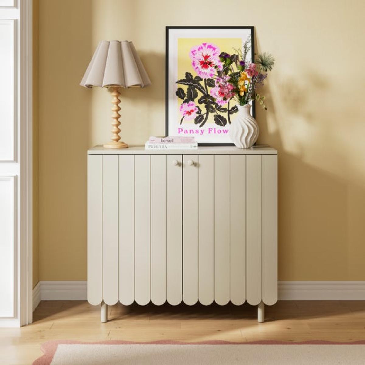 I love this small sideboard for its practical size and charming scalloped detailing, which adds a touch of personality without overwhelming a space. It’s perfect for adding storage to living rooms, hallways, or even bedrooms where space is limited. Its neutral colour makes it versatile enough to work in both modern and traditional interiors, especially when styled with a mix of accessories such as ceramics, framed artwork, or cosy lighting. For a cohesive look, consider pairing it with soft textiles or natural textures to create a warm, inviting vibe. Practical tip: use the top surface for everyday essentials like lamps or decorative objects, while the inside can hide away clutter, keeping your space neat and stylish.