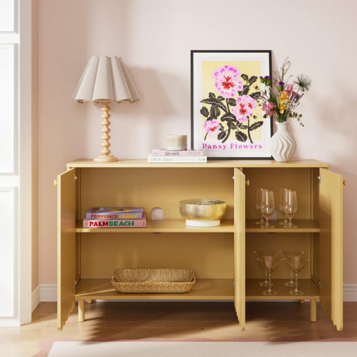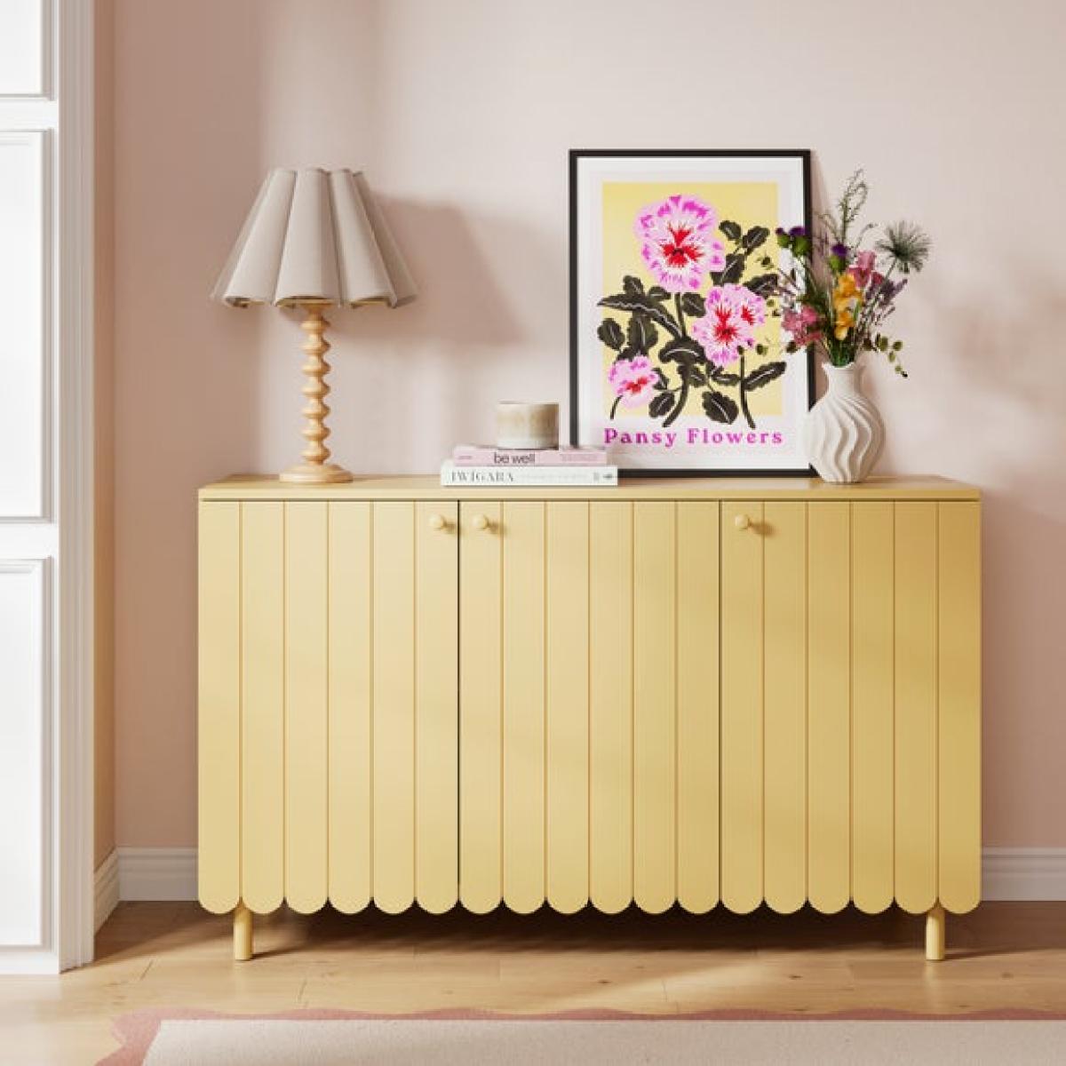 I love the scallop wide sideboard for its subtle yet distinctive design detail, which adds a touch of charm without overpowering a room’s aesthetic. It works particularly well in contemporary or Scandinavian-inspired interiors thanks to its clean lines and soft hue, but it can also add a fresh, modern twist to more traditional setups. Practical styling tips include using the top surface to display understated decorative items like vases or lamps, while stored essentials can be kept organised behind the doors or drawers. Its generous width makes it ideal for dining rooms, hallways, or living spaces, serving both as a practical storage piece and a stylish focal point.