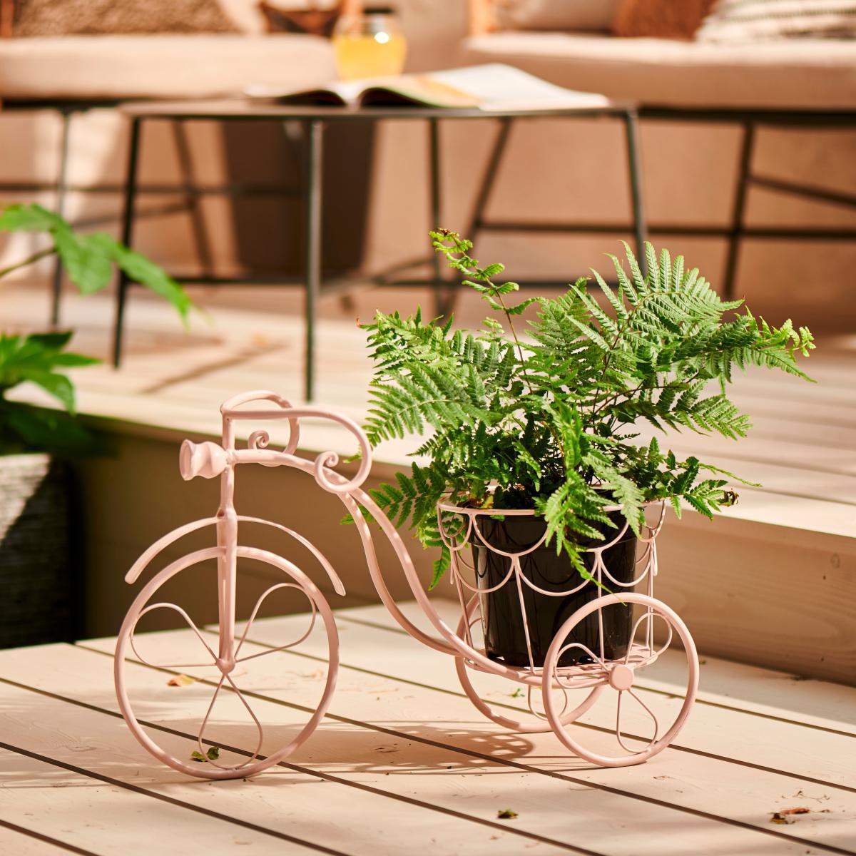 I love the bike-shaped pink pot for its playful yet stylish appeal - it’s a charming way to add colour and character to indoor or covered outdoor spaces. It works particularly well in eclectic or contemporary interiors where a splash of colour and a touch of whimsy can brighten up the setting. Practical styling tips include pairing it with leafy, lush plants like ferns or trailing varieties to create a dynamic vignette. It’s also a great piece to place on a side table, shelf, or even on a patio to inject personality without overwhelming the space. Its cute, compact form makes it perfect for small corners or cluttered surfaces, ensuring your plant display feels fresh and fun.