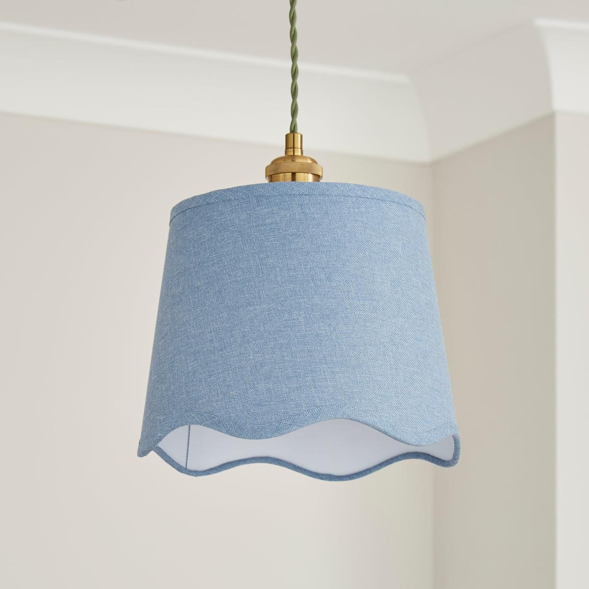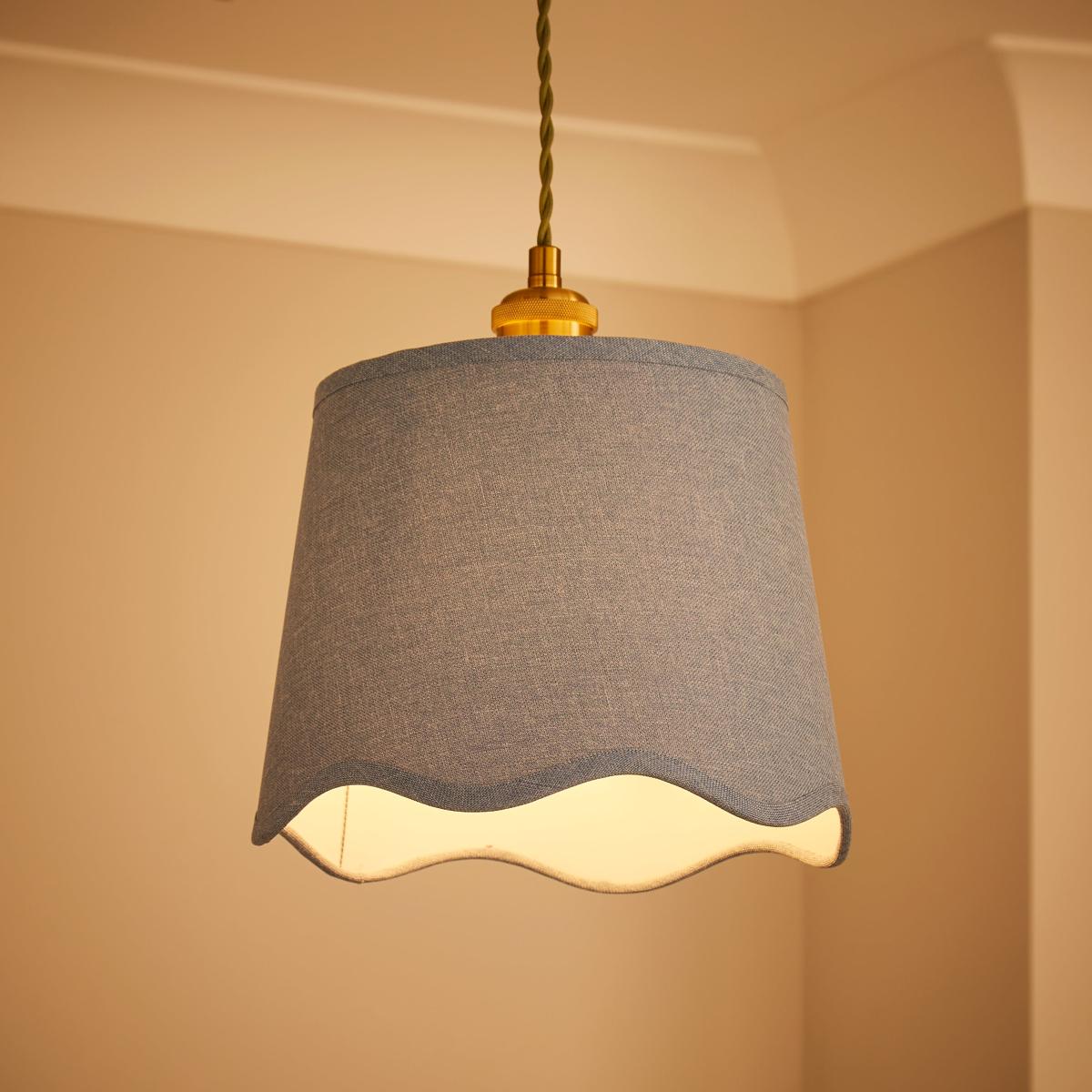I really like the scolloped edge linen shade for adding a touch of subtle charm to a space. It works particularly well in cosy living rooms, bedrooms, or even nurseries where a soft, inviting light is desired. The linen fabric brings a natural texture that pairs nicely with both classic and contemporary interiors, especially those with neutral or pastel colour palettes. For practical styling tips, consider matching it with brass or wood accents to enhance its timeless look, and keep the lamp base simple so the shape and detailing of the shade remain the focal point. This shade is easy to incorporate into a layered lighting scheme, working well with both table lamps and pendant fixtures.