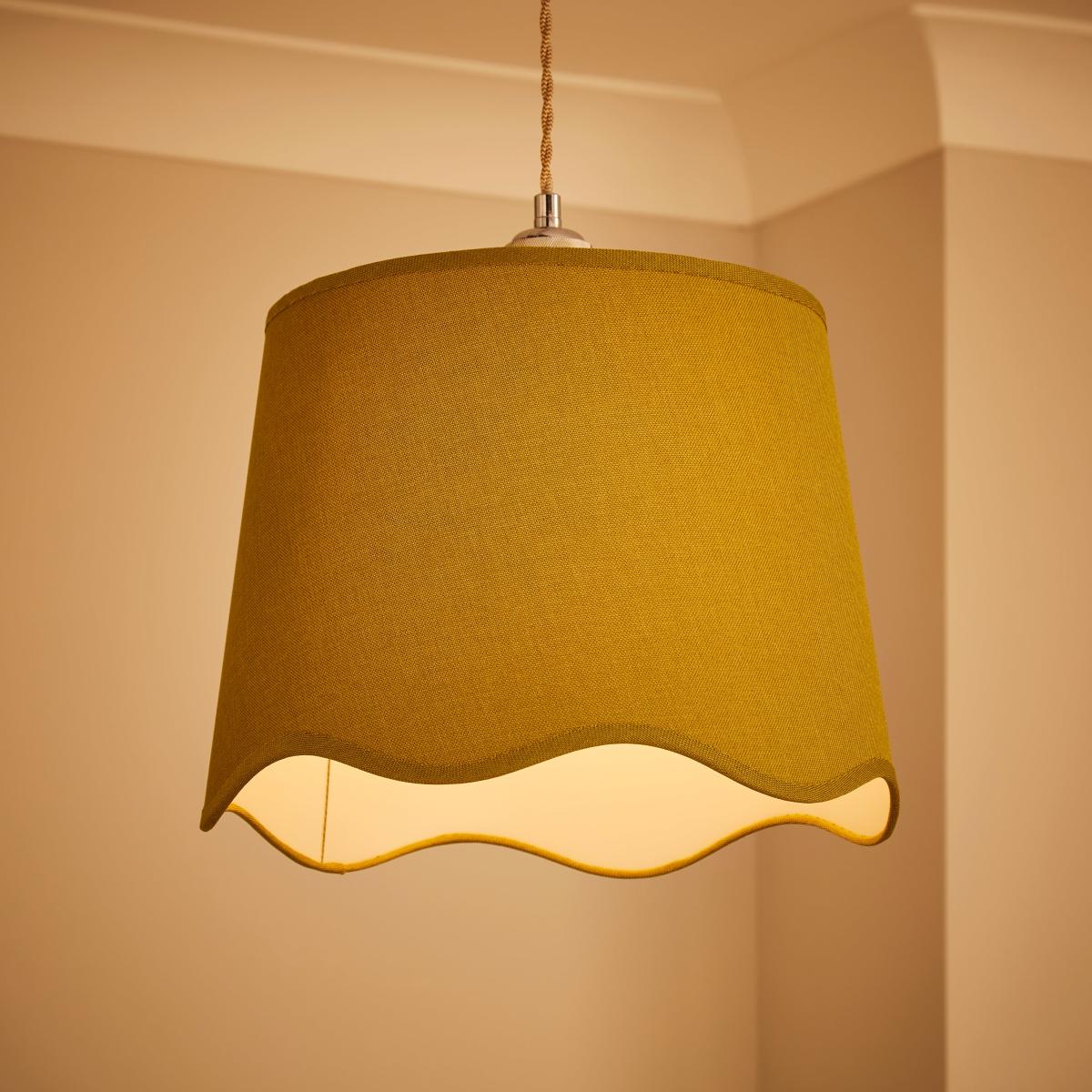 Scalloped Edge Linen Lamp Shade Sage (Green)