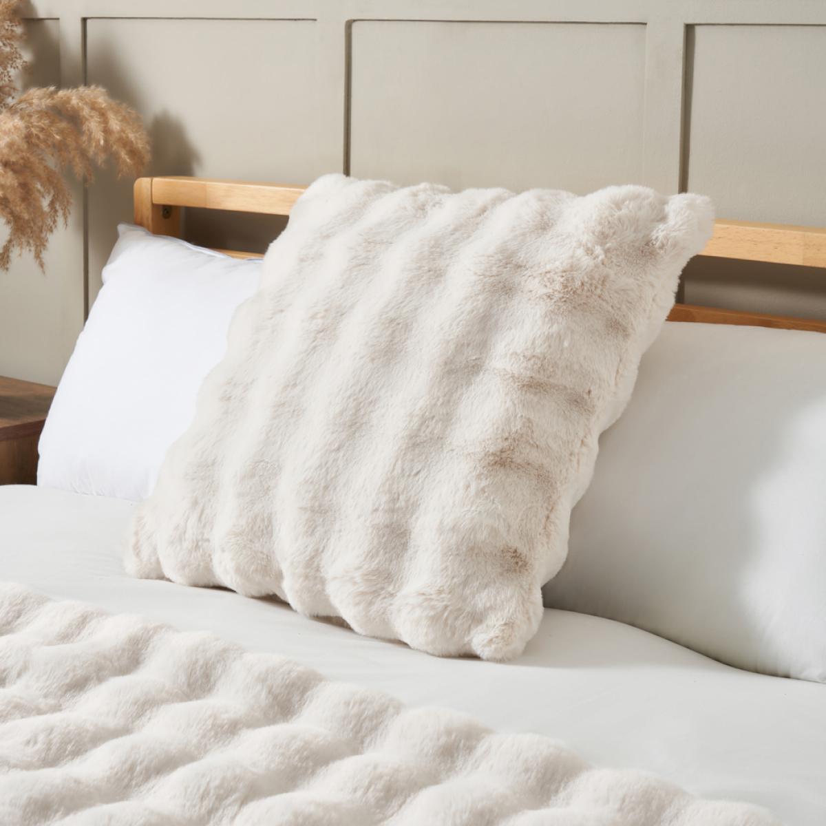 Discover a subtle but stylish home accessory for your interior with the Scalloped Faux Fur Cushion in Cream, blending luxurious softness with distinctive detailing. Its scalloped texture adds a refined twist, while the creamy tone brightens and softens any decor. Larger than standard cushions, it s ideal for creating a layered, inviting look on sofas or beds.
