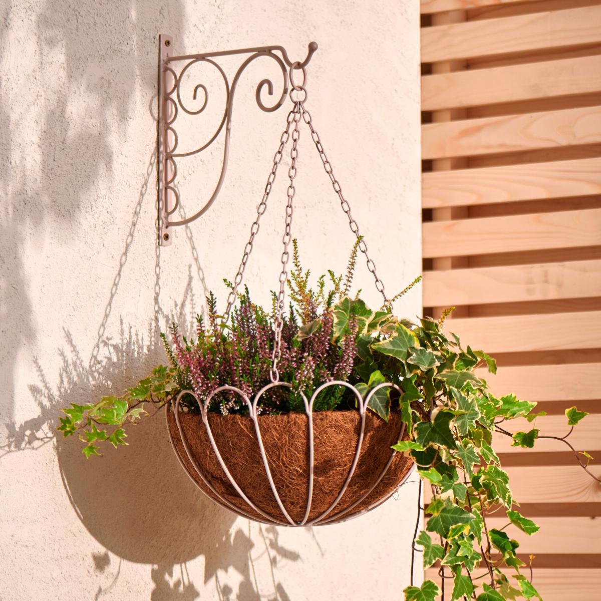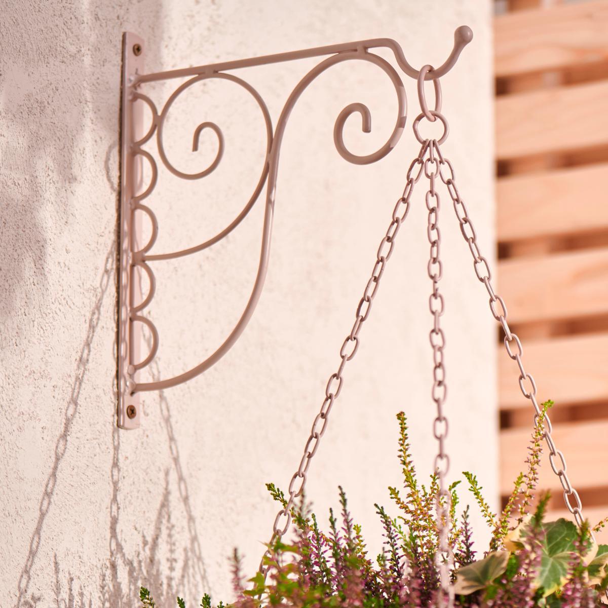 Fashioned with a stunning pink scallop design, this hanging basket bracket is a beautiful way to display your hanging baskets. This hanging basket bracket has been beautifully handmade.