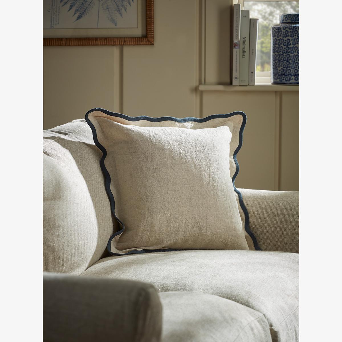For an elegant and sweet finish to your home, place this cushion on your sofa, armchair or even bed. With a soft cover made from a linen and cotton blend, the neutral tones are contrasted with a blue piped scalloped edge, creating a homely atmosphere whenever it is placed.