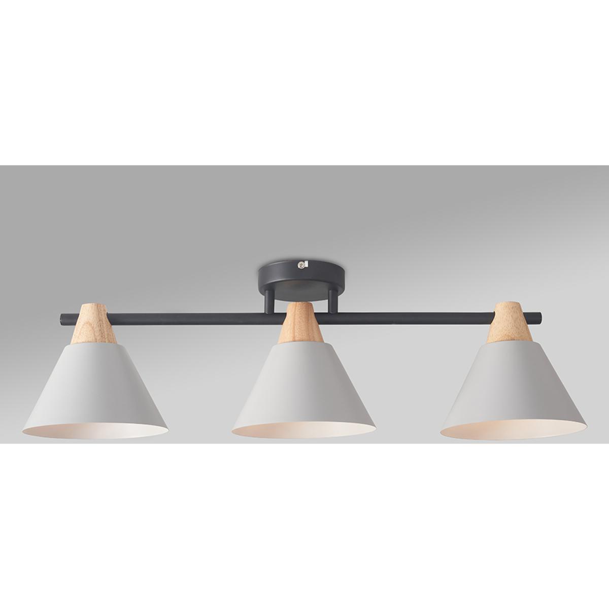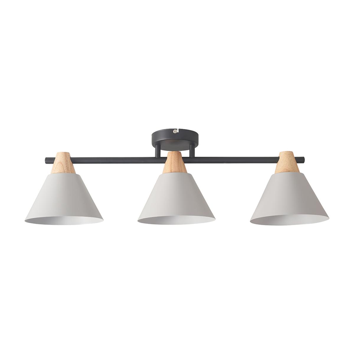 This 3-way ceiling light fitting in a matt black natural wood finish, with complementing grey cone shaped shades. Owing to its neutral scandi style design and balancing colours, it simplistic yet elegant design would make it the perfect statement piece in any living area. Ceiling lights are usually the main source of illuminating a room but with the many styles on offer today, also become a main focal point or talking point.