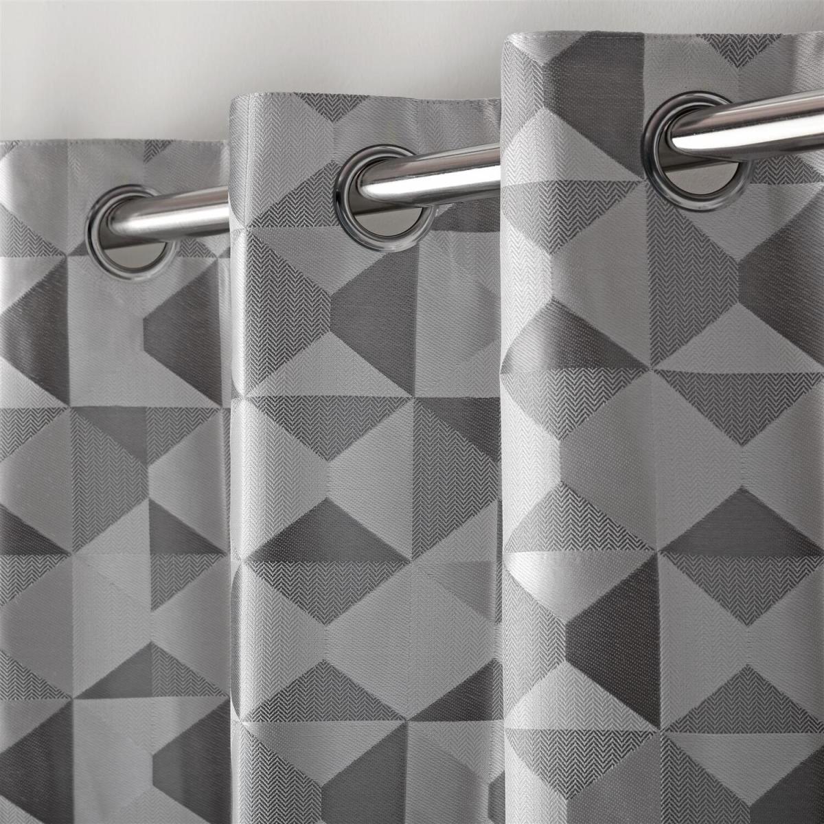Perfect in any bedroom, or living room these room darkening curtains are fully lined and complete with eyelet heading for a contemporary look. The curtain material is medium weight and an intricate two tone jacquard weave design creating a geometric Scandinavian look pattern. Machine washable 100 polyester.