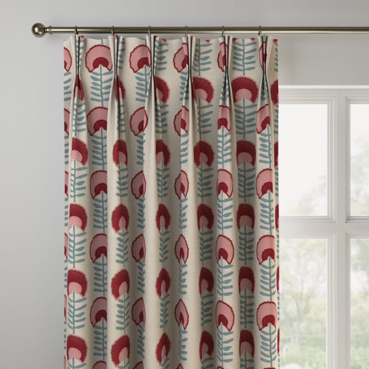 * Premium polycotton composition * Retro, folk art inspired design * Available in a selection of header and lining options * Coordinating Made to Measure and Made to Order items available to purchase separately Add a playful yet elegant touch to your home with the Scandi Floral Made to Measure Curtains. Inspired by retro folk art and Scandinavian design, this fabric brings charm, colour, and a handcrafted feel to any interior. The premium polycotton blend ensures a soft handle with durable, everyday performance, offering the ideal balance of comfort and practicality. The design features simplified florals in a modern, symmetrical layout, perfect for family spaces, cosy bedrooms, or creative living areas. Available in a selection of header types—such as pencil pleat, eyelet, or double pinch pleat—and lining options including blackout or thermal, these curtains can be customised to suit your light and insulation needs. Handcrafted to your exact measurements, they ensure a perfect fit and polished finish. Pair with matching made to order cushion covers or Roman blinds to complete the look. Scandi Floral is ideal for those who love a mix of nostalgia and Nordic style. Please note: If your measured width is over 124cm your curtains will come with a fabric join to provide the full width required.