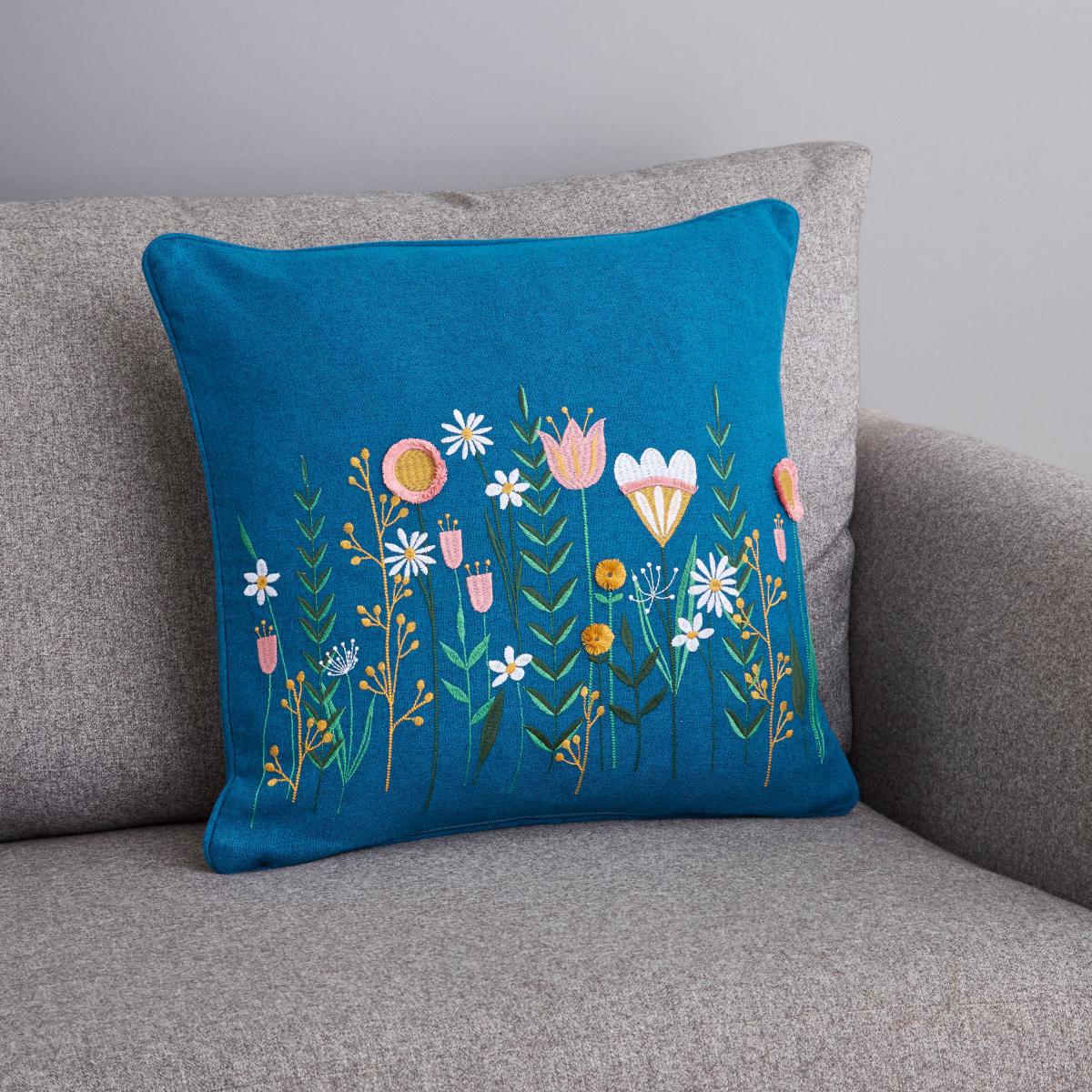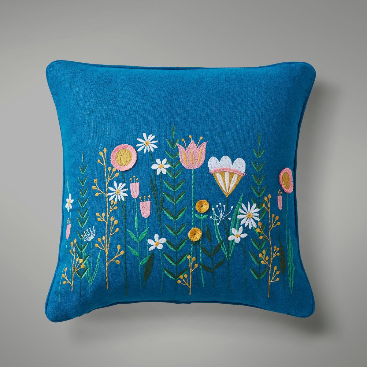 Well isn't this cushion cover just 'blooming' beautiful. A modern scandi floral design has been embroidered into a polyester fabric. With a plain reverse, the cushion cover has been complete with a zip fastening which helps secure the filling inside of the cover.