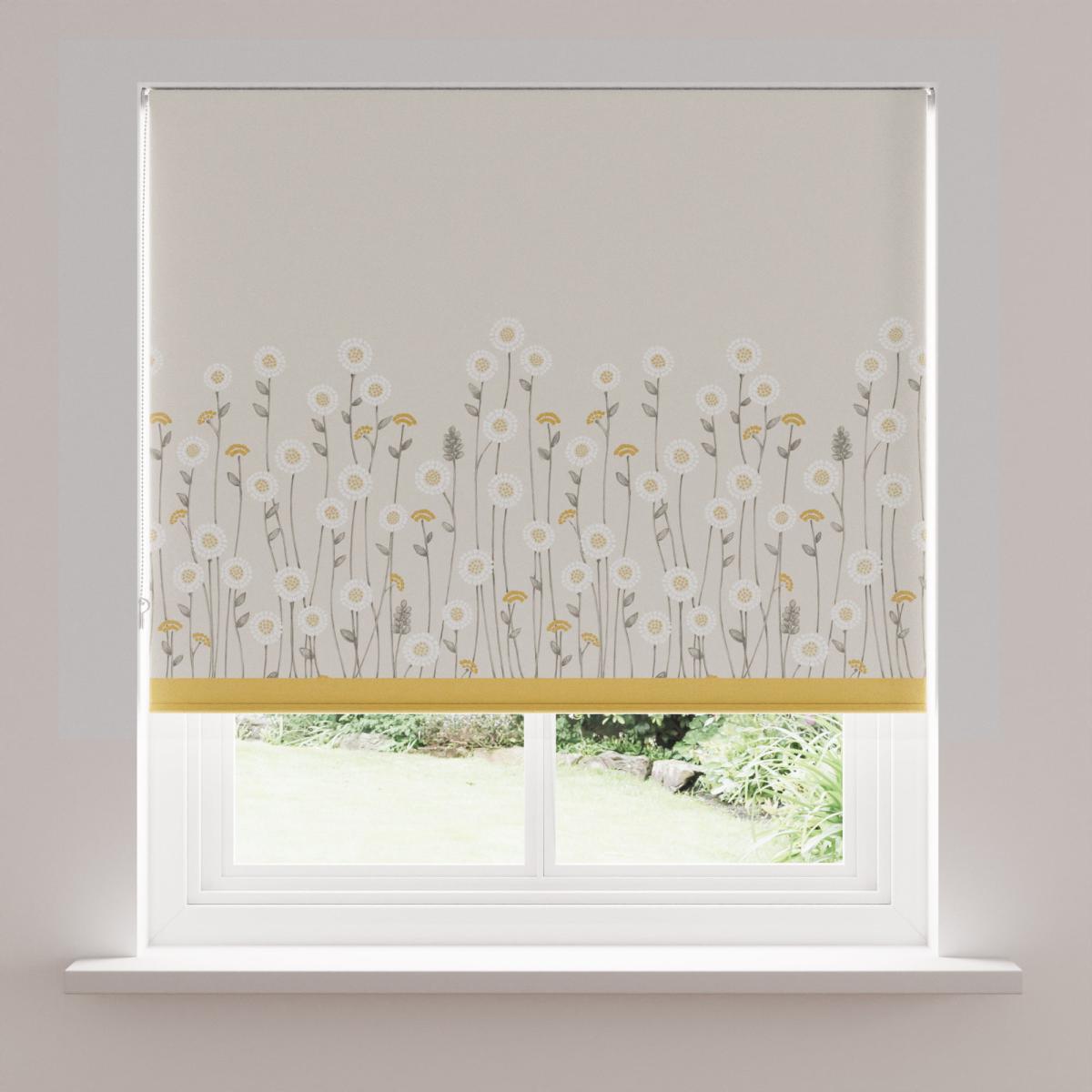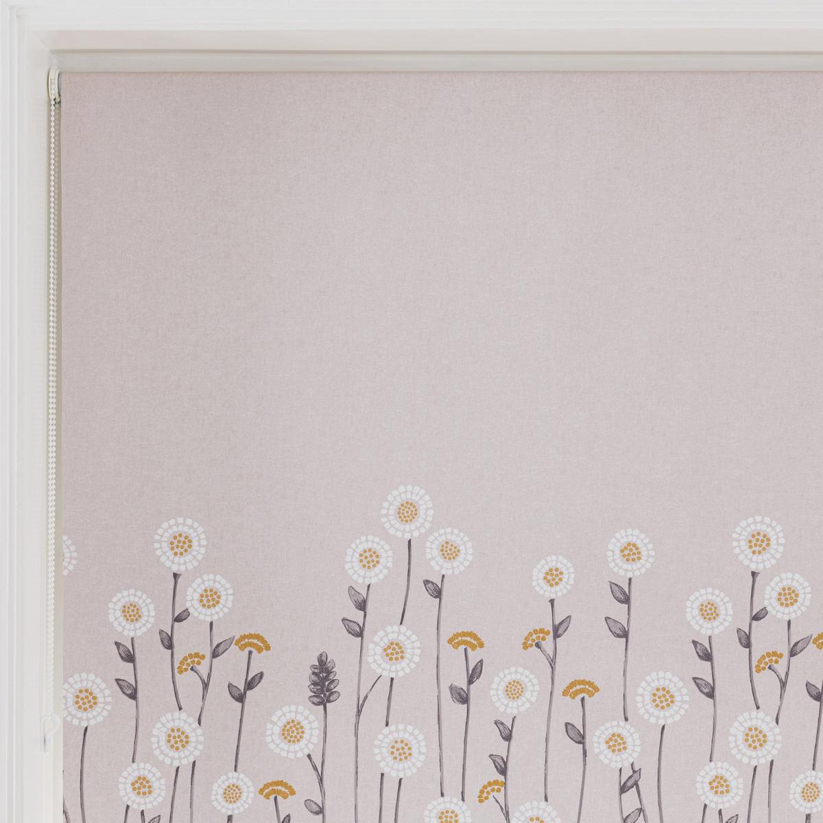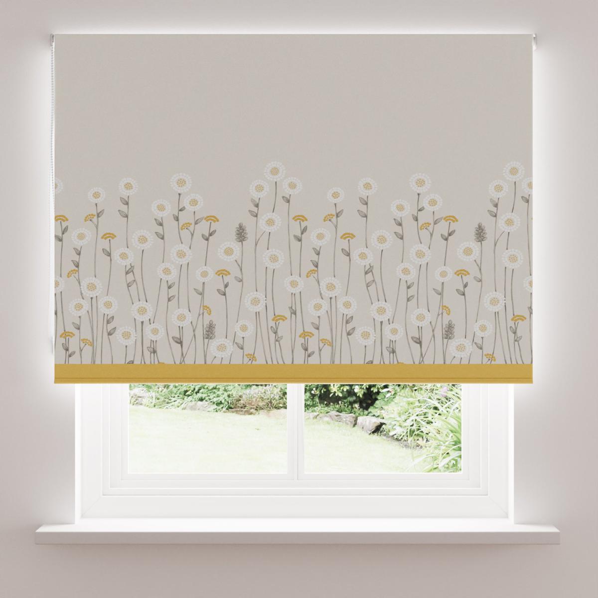 Scandi Flowers Natural Blackout Roller Blind Grey, White and Yellow