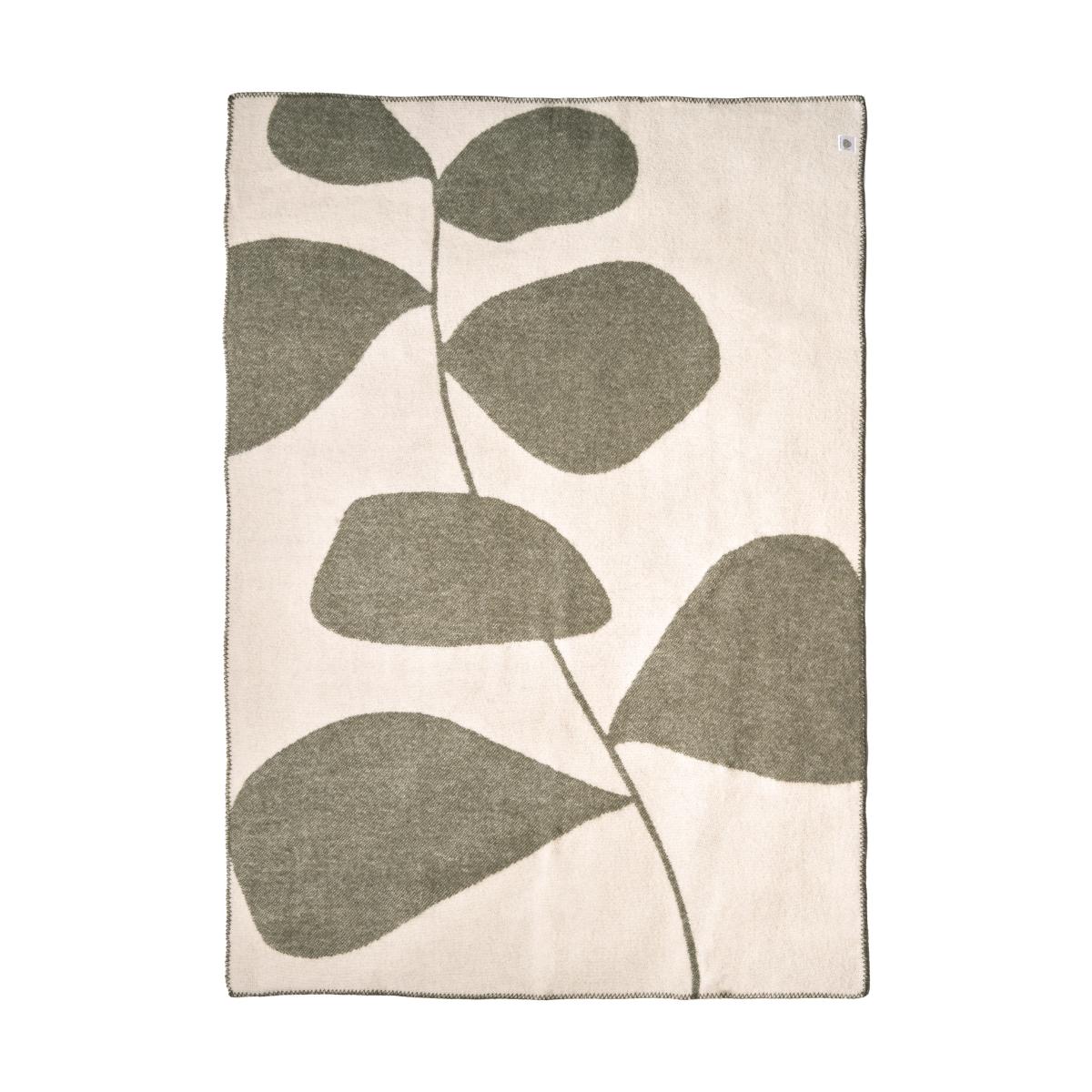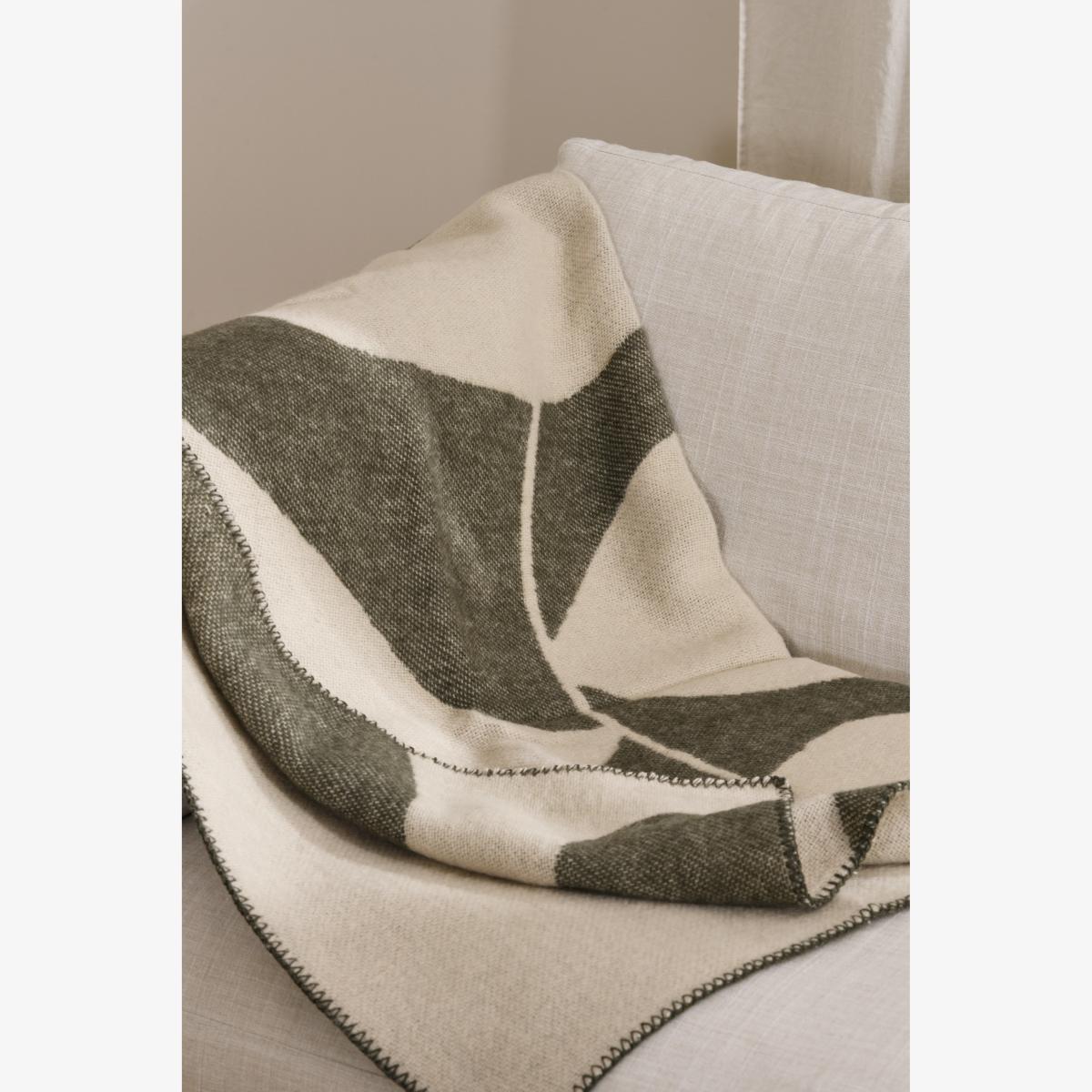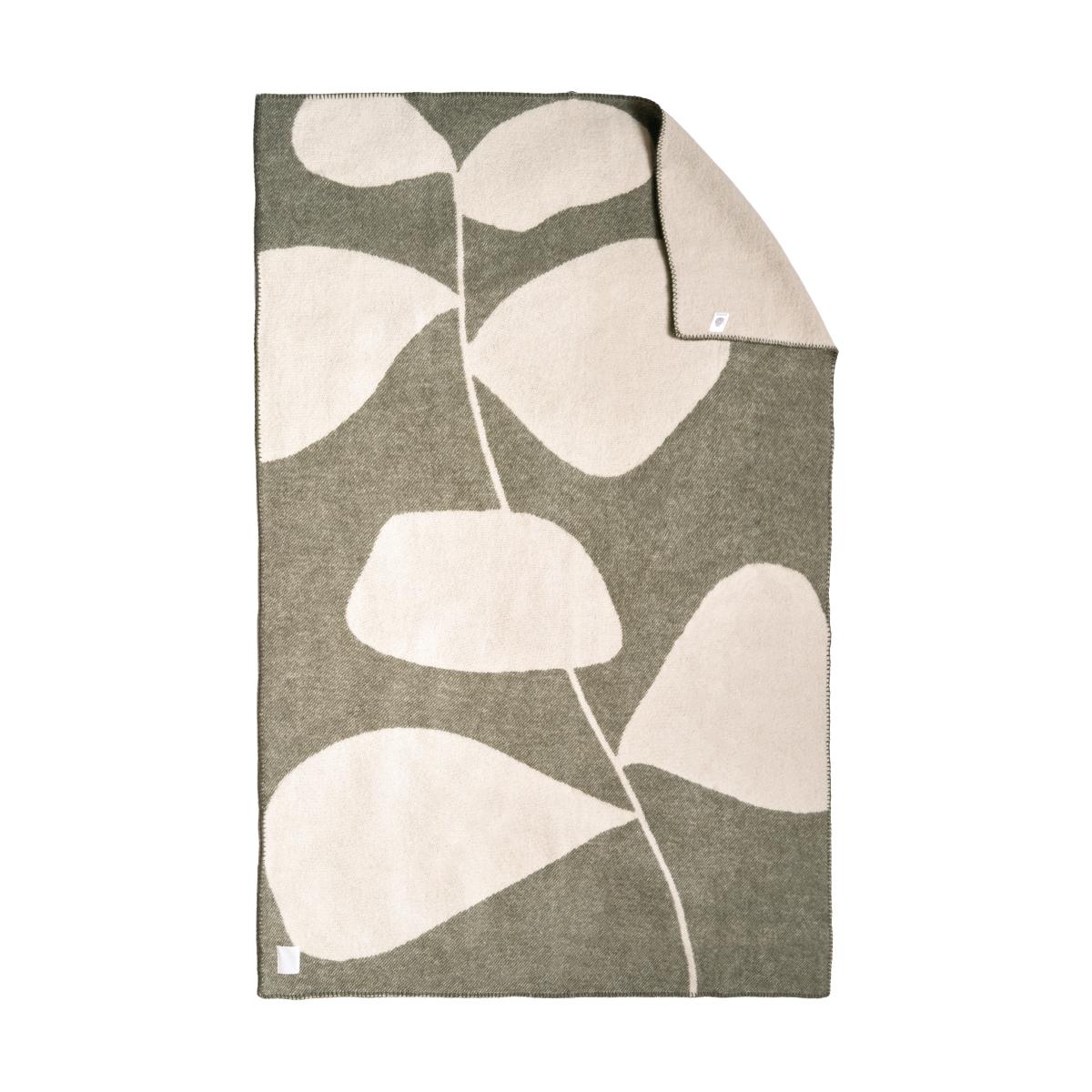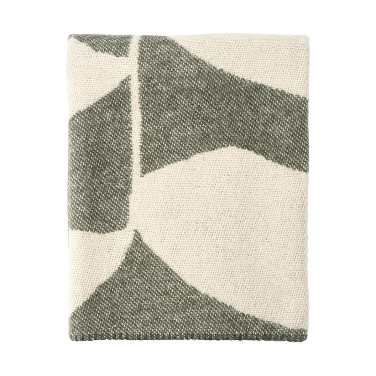 Scandi Living Leaf wool throw 130x180 cm Khaki green