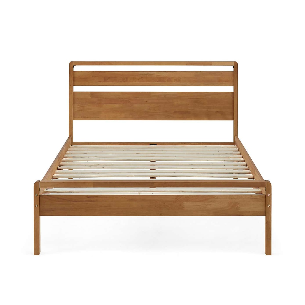 Crafted from solid rubberwood, this sturdy bed frame features solid wood slats and two centre feet for added strength and durability. Completed with a rounded finger joint corner detail and a natural lacquer finish this bedstead will make a classic addition to any bedroom. Please note: Price is for bed frame only and does not include mattress.