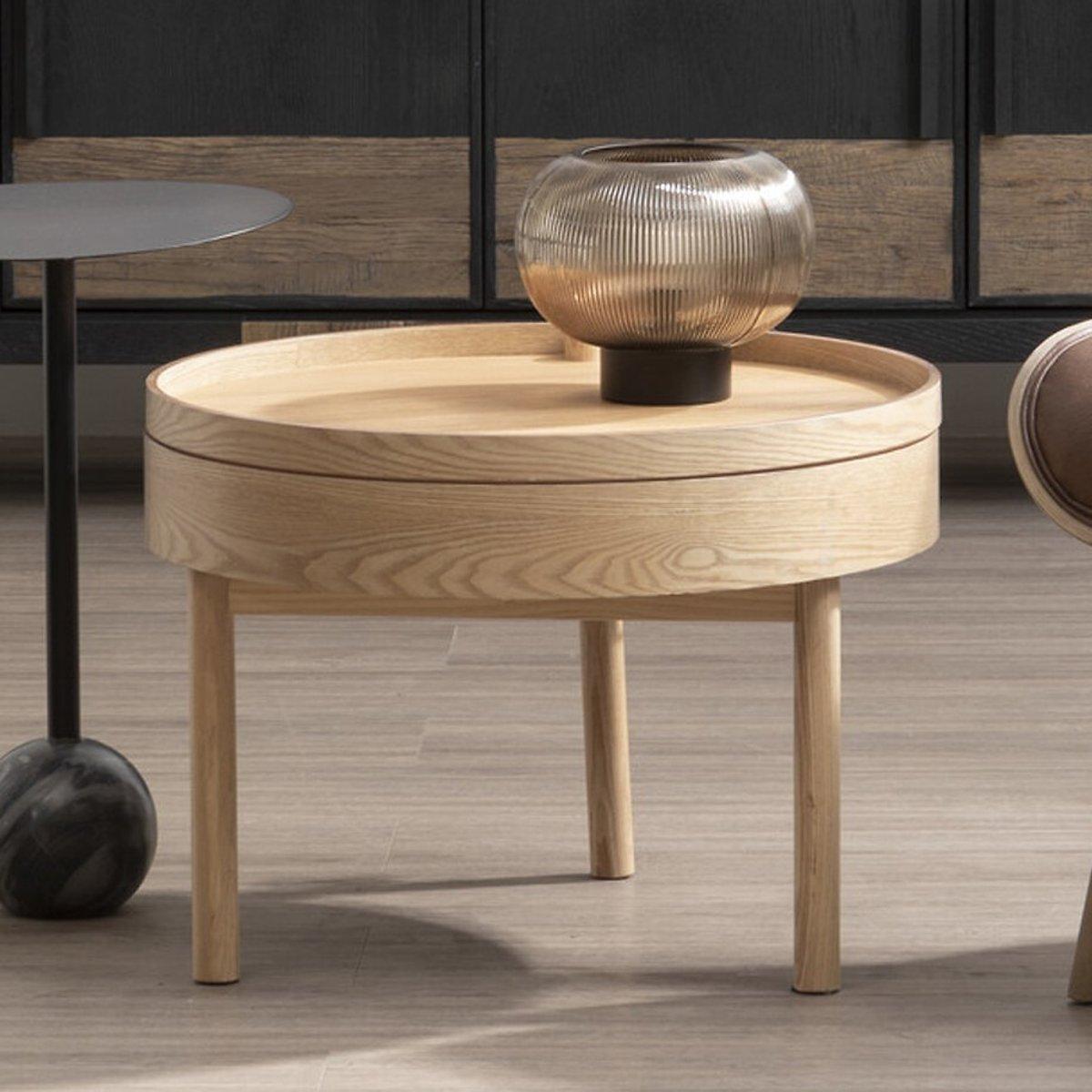 Combining style with practicality, this durable and sturdy round side table blends seamlessly into organic and boho-inspired spaces. Skilfully handcrafted with a revolving top, it’s the perfect storage solution for hiding living room clutter. Product details Rotating tabletop reveals hidden storage compartment Three legs Handcrafted Product Composition - Wood, MDFProduct Dimensions - 60 cm x60 cm x43 cm , Weight - 6.8 kg. Package Dimensions - 66 cm x 64 cm x 14 cm, Weight 8 kg. This product will be dispatched by one of our trusted suppliers. You’ll be contacted by their selected courier about your delivery. PREMI01
