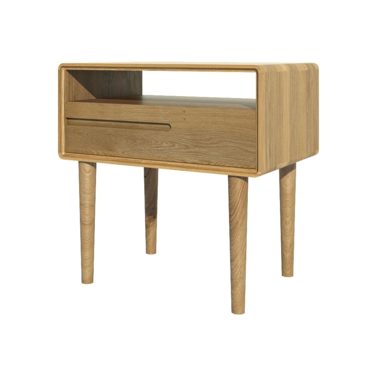 The Scandic Table is a beautifully simple side table next to your favourite easy chair or even by the bedside. Perfectly sized for a reading or occasional lamp, the simple lines and playful asymmetry of the design add a contemporary touch to any space in the home. Practical drawers and shelves combine to ensure function as well as style. Effortlessly cool Scandinavian-inspired design Gentle rounded ages and curved legs for a modern touch Dovetail jointed and groove handled drawer High quality pure oak construction