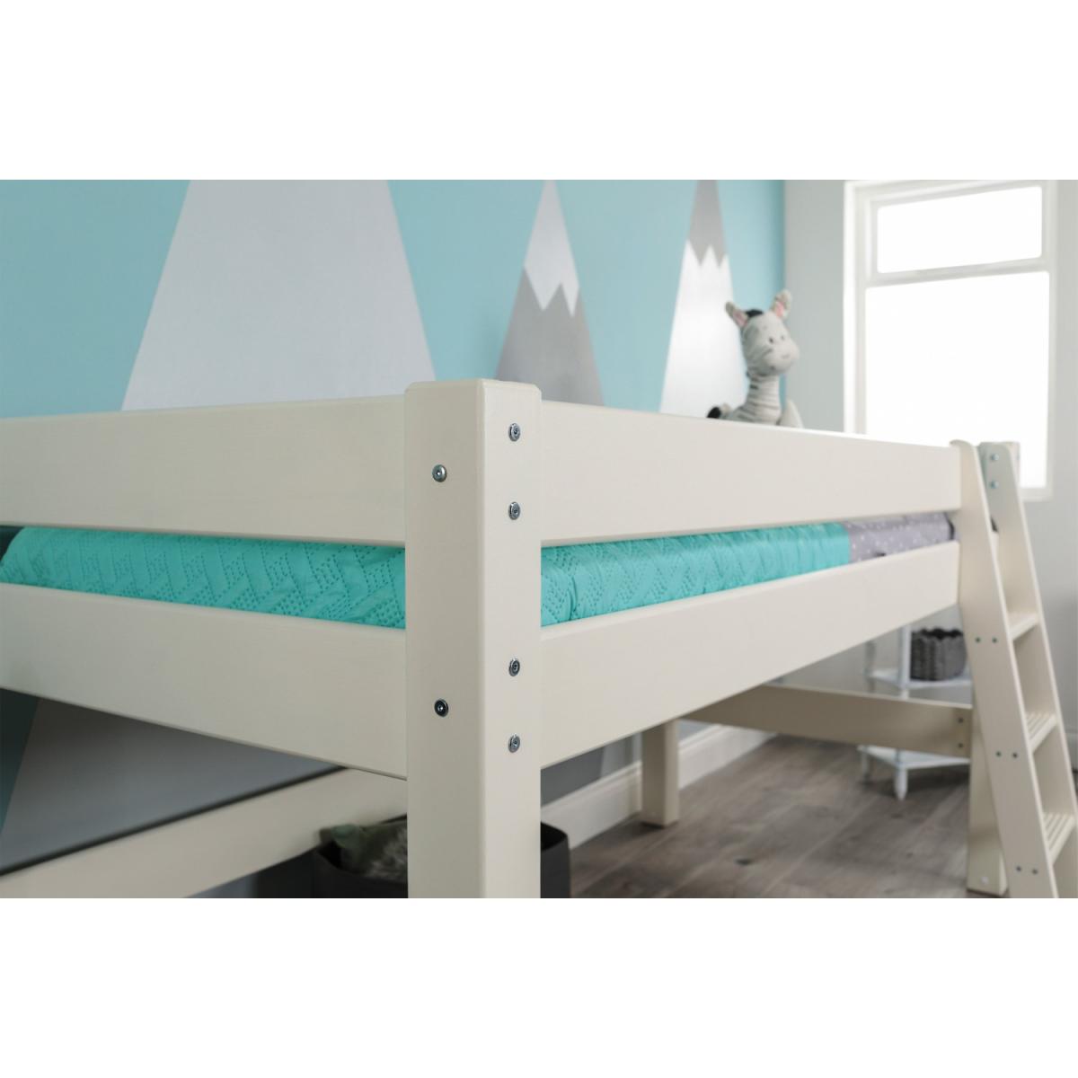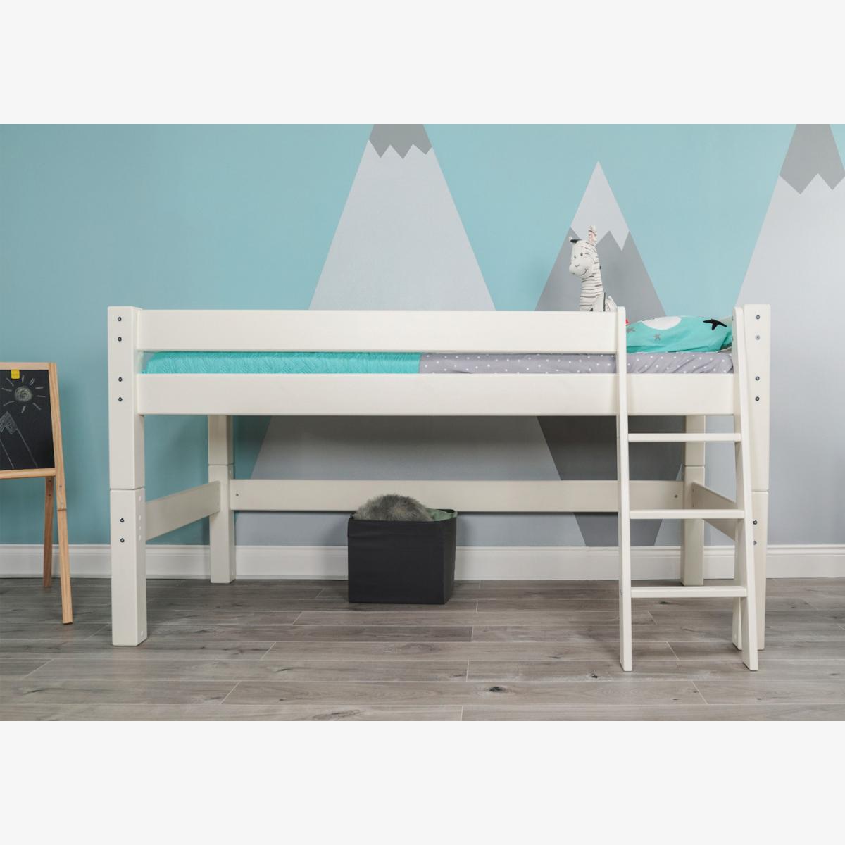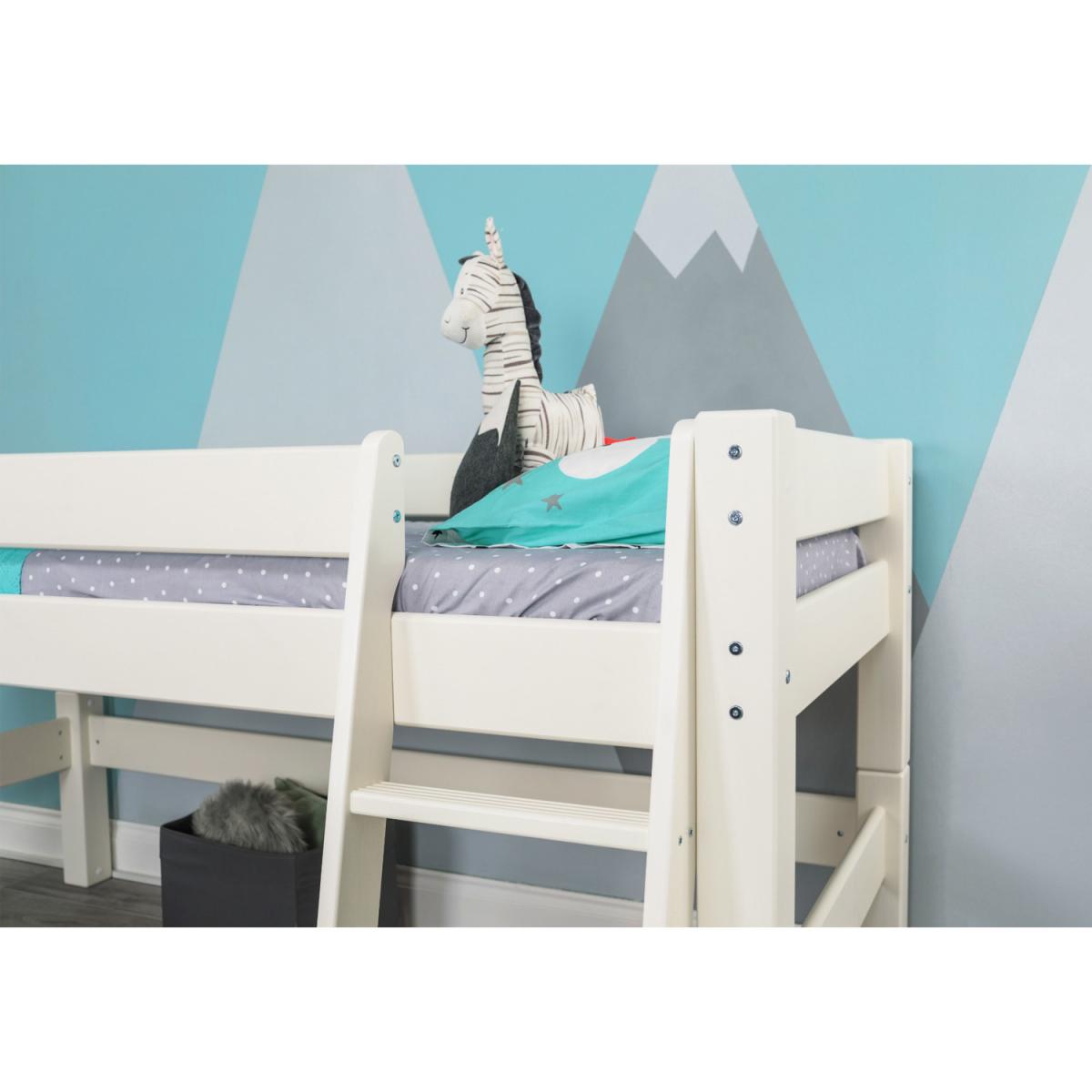 Our solid Scandinavian pine low mid-sleeper epitomises quality craftsmanship. The chunky frame is lacquered in a flawlessly lacquered off-white coating. A low-to-the-ground frame, built for safety and longevity. Also available as an optional extra is a hook on shelf, offering up some convenient space for books. Find out why our customers love the Scandinavia range so much. The low mid sleeper is a truly luxurious product, made by master craftsmen. The Scandinavia Low Midsleeper bed frame requires one single continental mattress (90x200cm). For safety reasons, the mattress should be no more than 16cm in height. All Noomi beds are FSC certified, meaning the solid wood is sourced from sustainably managed forests. The Pine is coated with a non-toxic, eco-friendly water-based paint in a solid white option. Each individual piece of pine is moisture tested to ensure a strong, long-lasting build. Noomi uses only ethically sourced Solid Scandinavian pine, which grows straighter, stronger and with fewer knots due to the cold atmosphere in the Nordic regions.