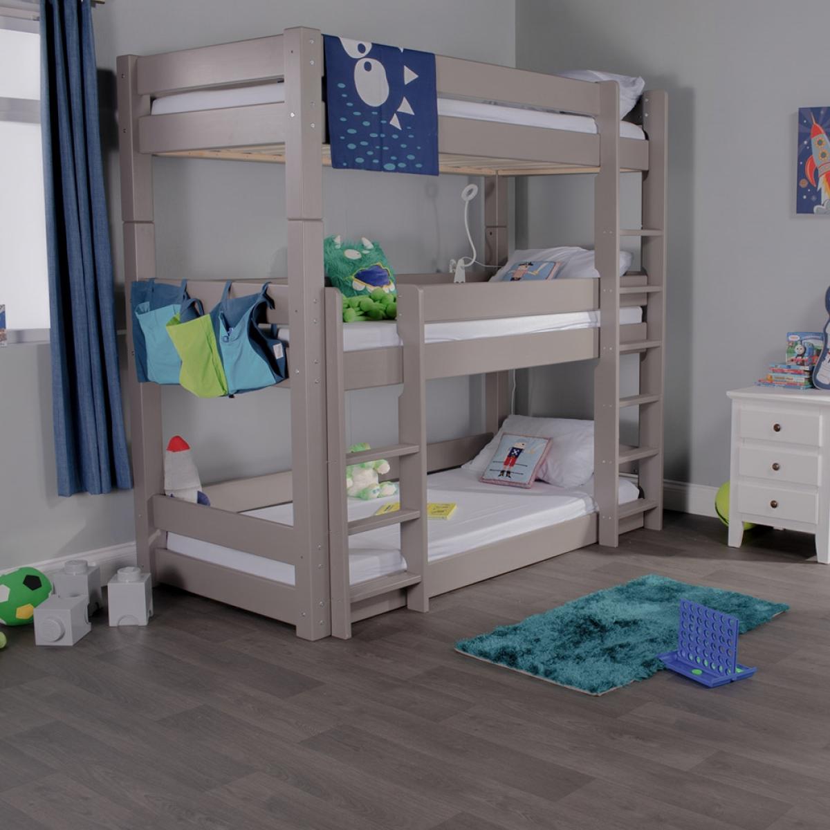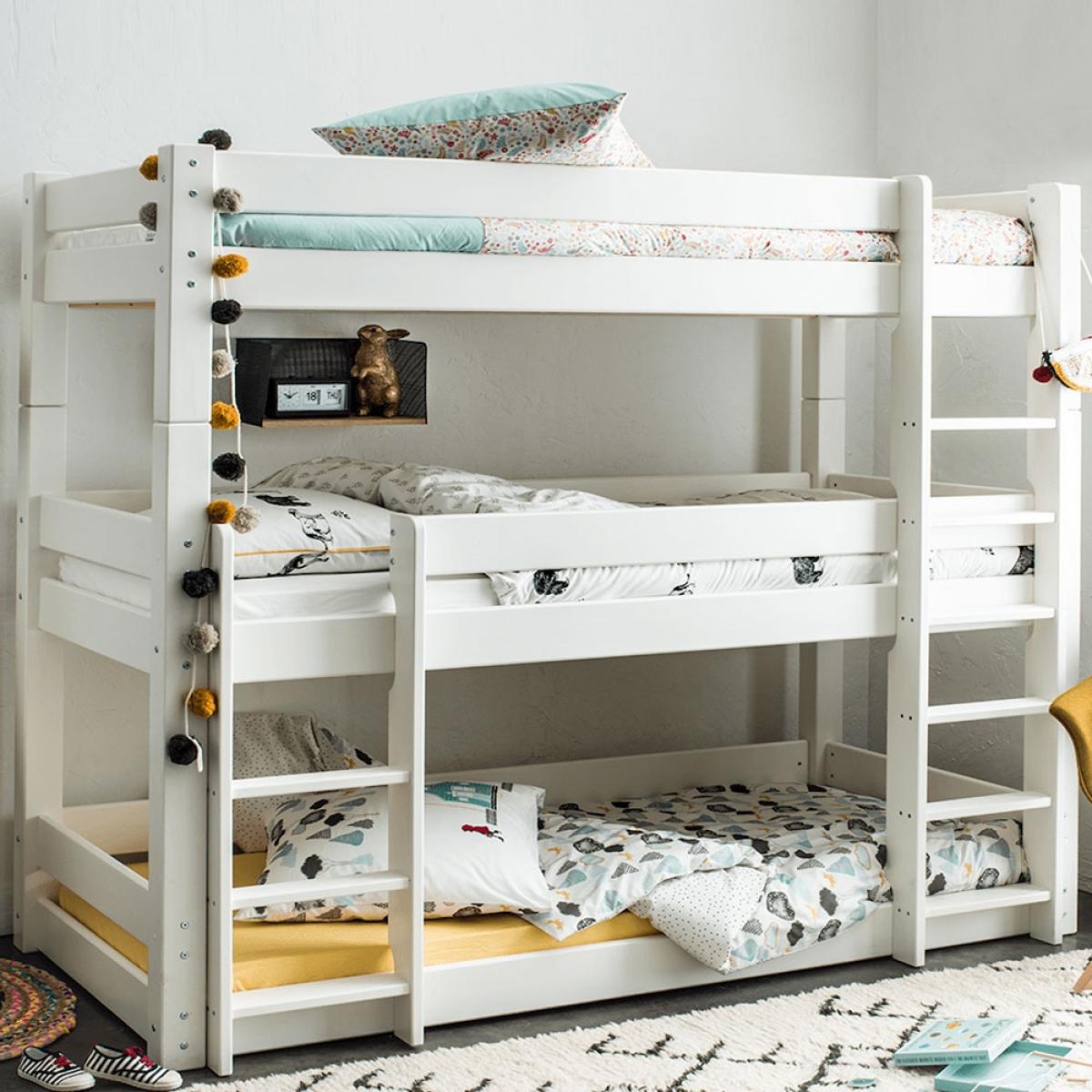 Not only does the Scandinavia Triple Bunk Bed from Flair Furnishings save on floor space, oh no, it just happens to be one of the coolest bunk beds we've ever seen! With three levels, it's ideal for triplets, big families, sleepovers or those unexpected guests, there will be space for everyone. Manufactured from Scandinavian pine, this is one durable bed that is sure to see your kiddie through childhood and beyond whilst the simple white finish will blend seamlessly into any interior style. This impressive bed is sure to put a smile on your kiddies faces! I mean look at, how could it not?.