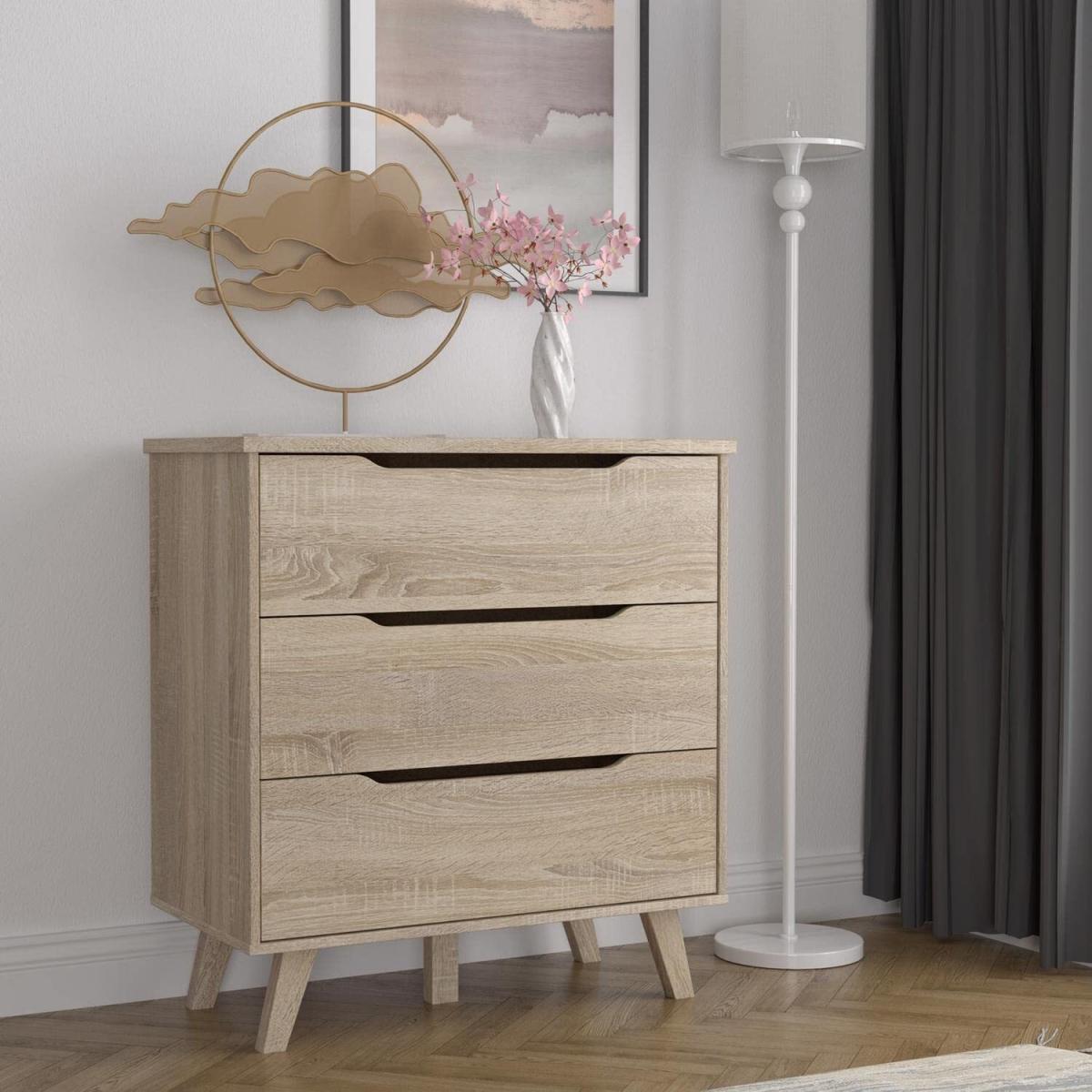 Scandinavian Modern Design Bedroom Chest with 3 Drawers - Light Oak