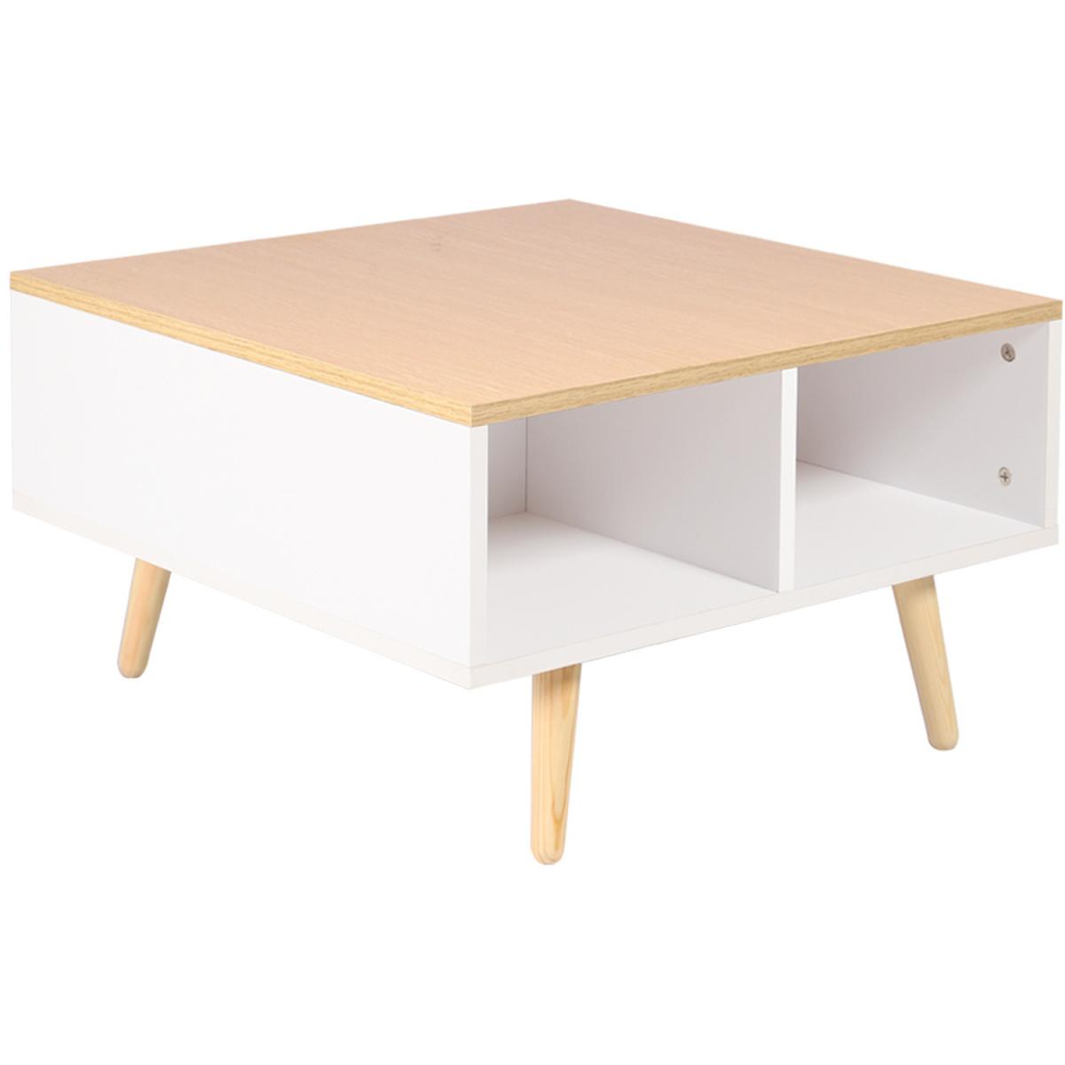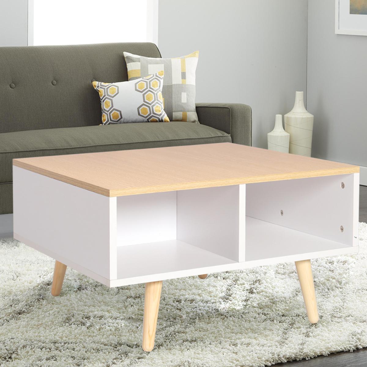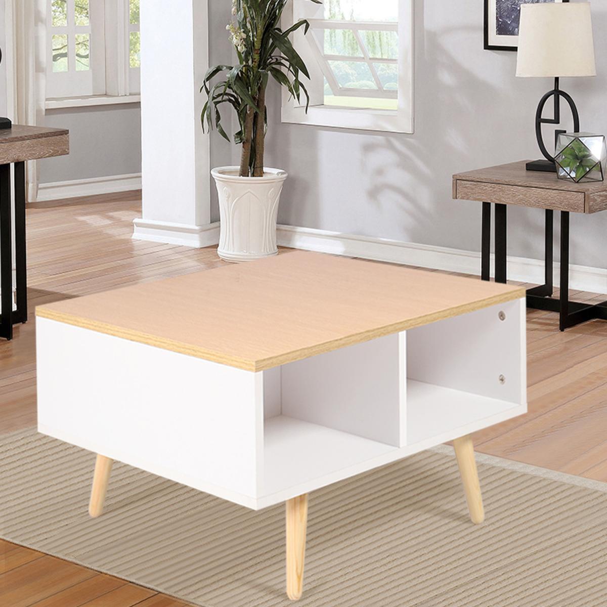 Scandinavian Solid Wood Coffee Table - White and Beige