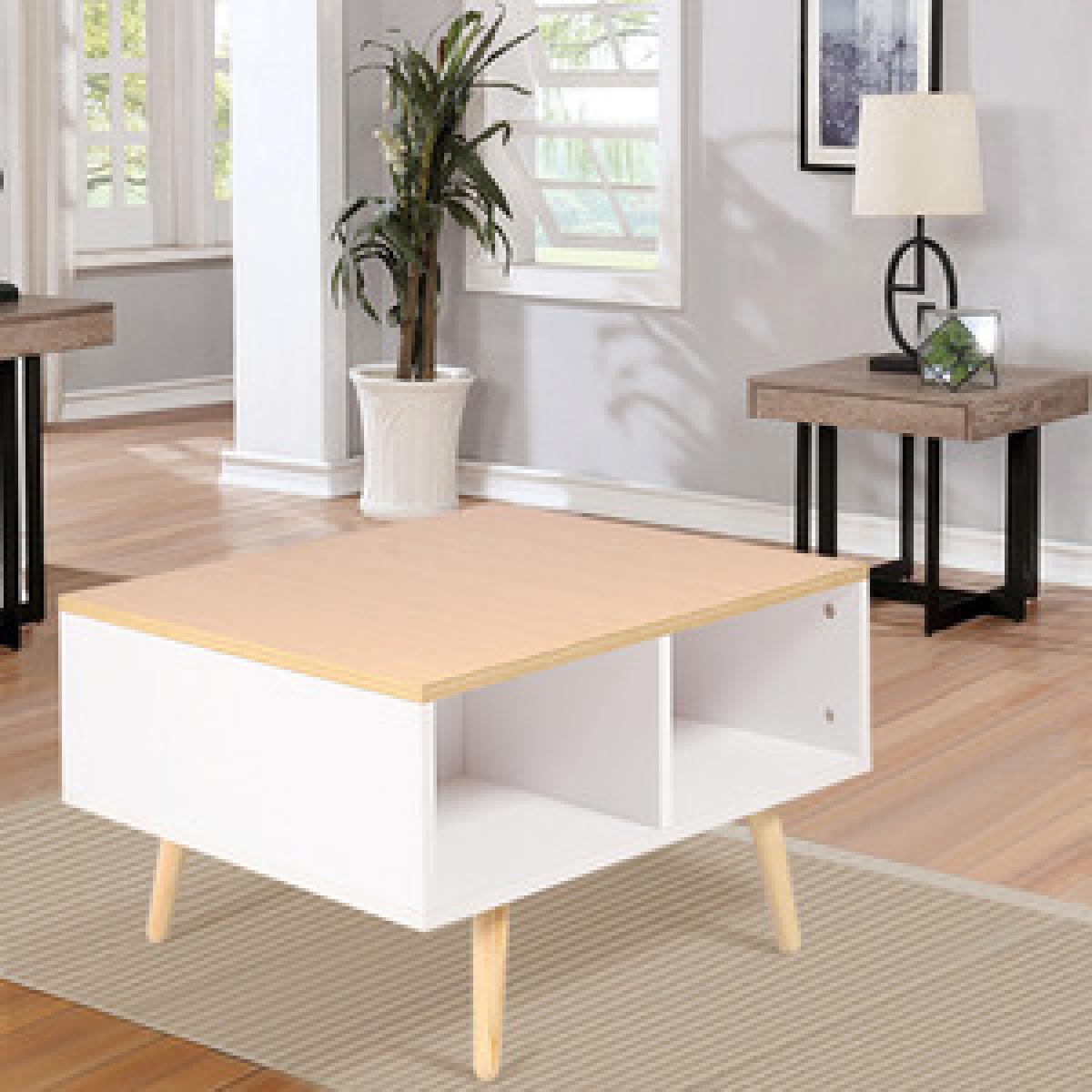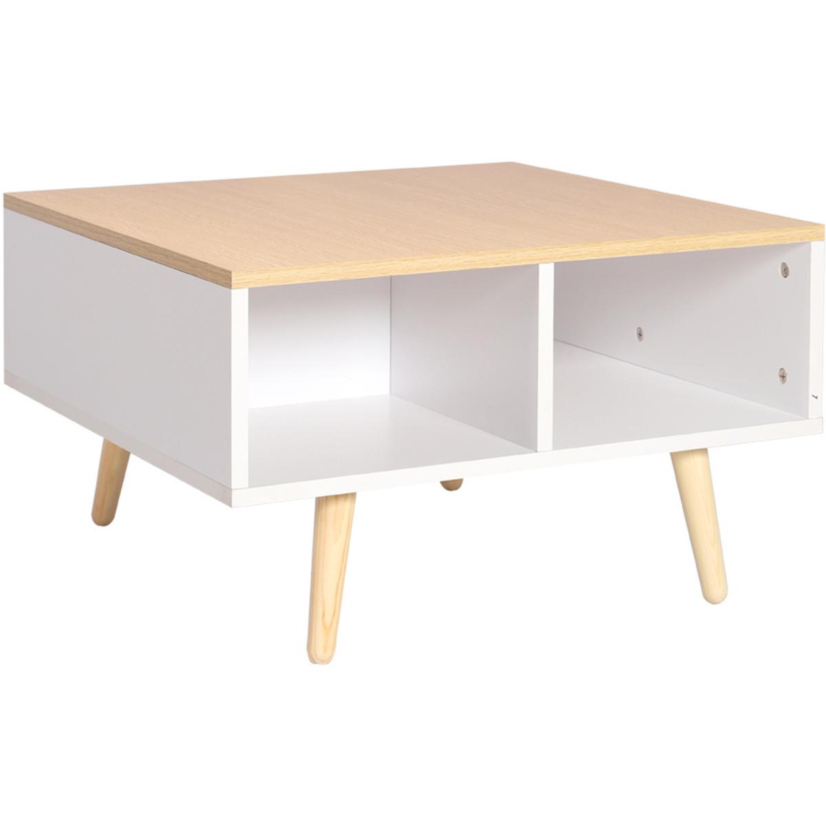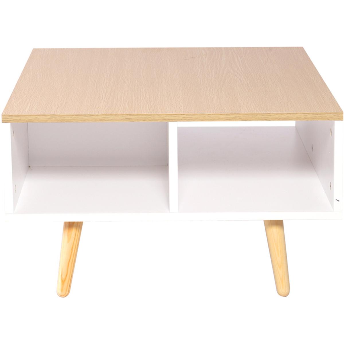 Scandinavian Solid Wood Coffee Table - White and Beige