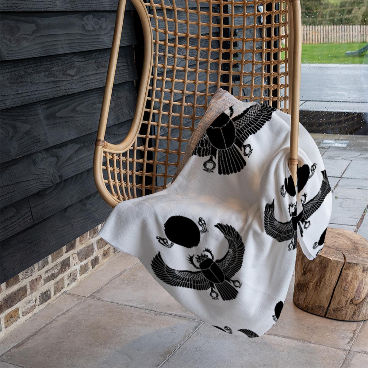 I love the Scarab Silhouette Blanket in black for its striking graphic design and versatile tone. It works particularly well in modern or minimalist interiors, where the bold black pattern can add a touch of visual interest without overwhelming the space. It’s perfect for layering over neutral sofas or beds, bringing a sophisticated edge. Practical styling tips include folding it neatly over the arm of a sofa for an effortless look or draping it casually across a bed’s foot to create a cosy yet stylish vibe. Its understated colour makes it adaptable to a variety of colour schemes, and it works equally well in both contemporary and eclectic settings.