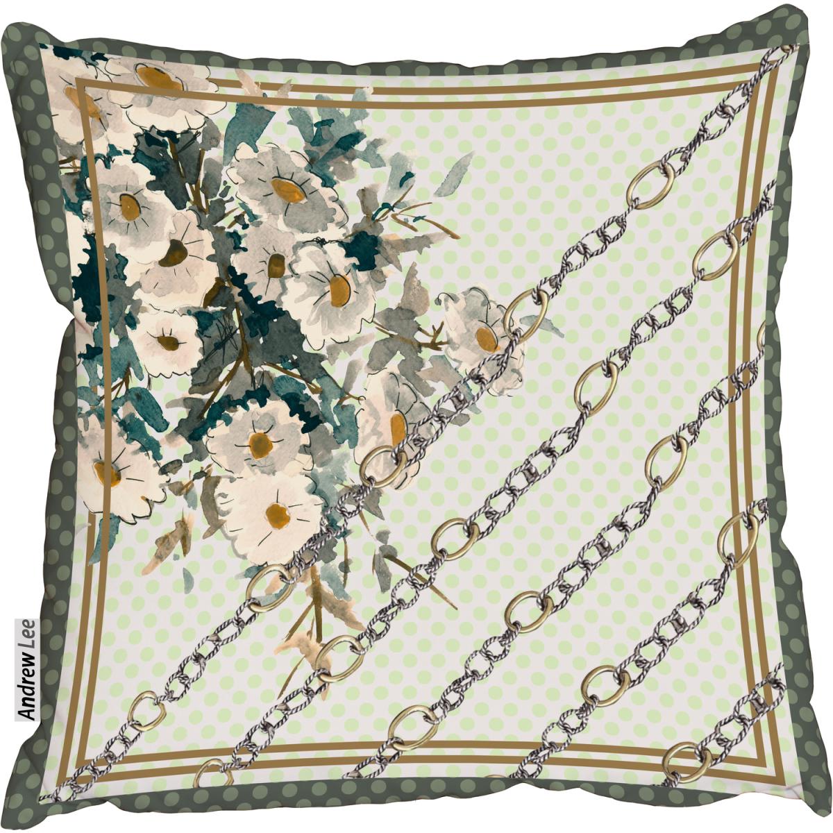 Scarf and chain Flowers pattern Cushion - Green / 60cm