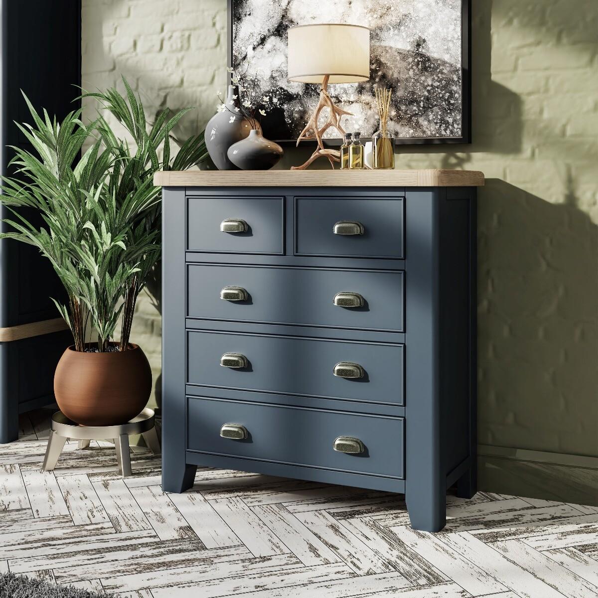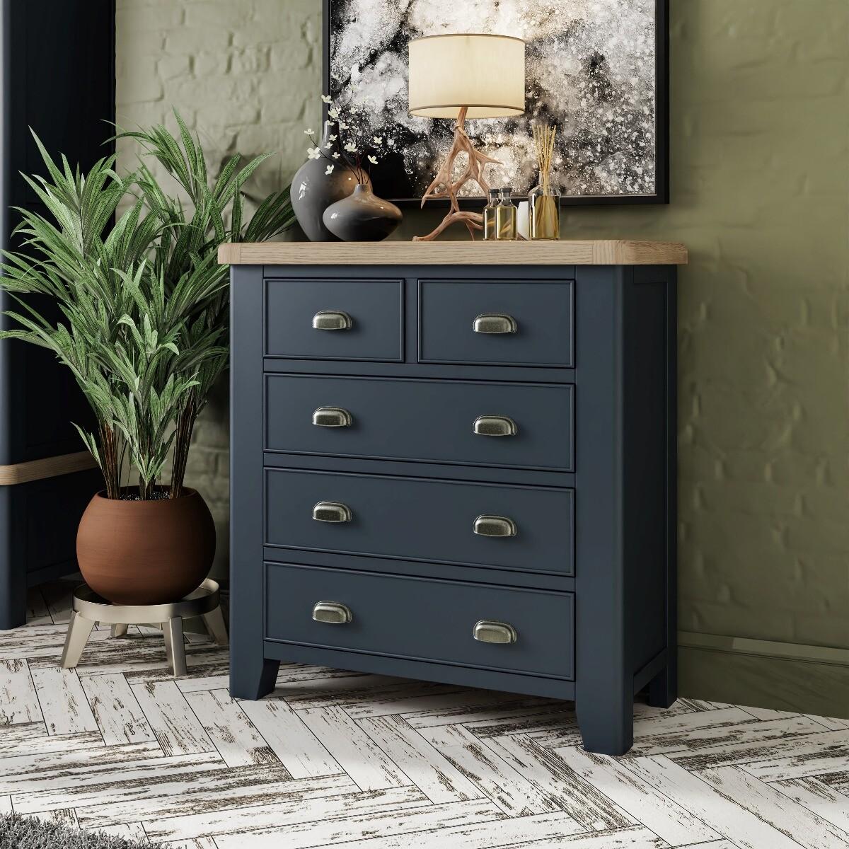 The gorgeous antique oak finish of the Scarlett collection looks stunning in both traditional and contemporary bedrooms. Not just beautiful, but also robustly constructed from the durable combination of solid oak, pine, MDF with veneers. Made to last with chunky tops and gently rounded corners, these pieces are family favourites– a chest all ages love. Crafted from oak, oak veneers, pine and MDF Lovely antique oak finish Dovetailed drawers with pewter effect cup handles Strong tapered legs