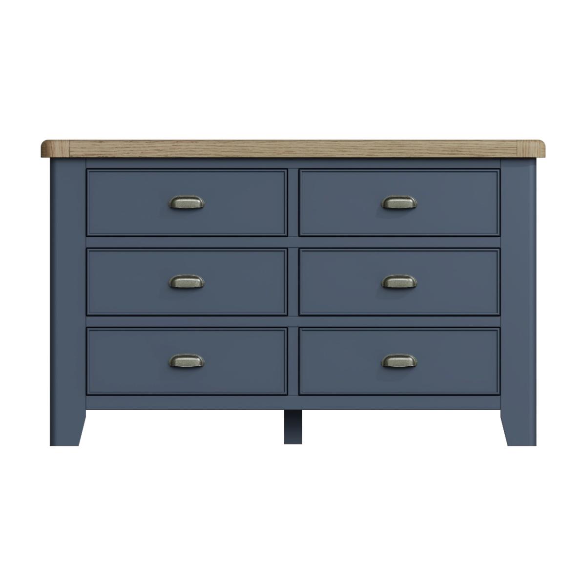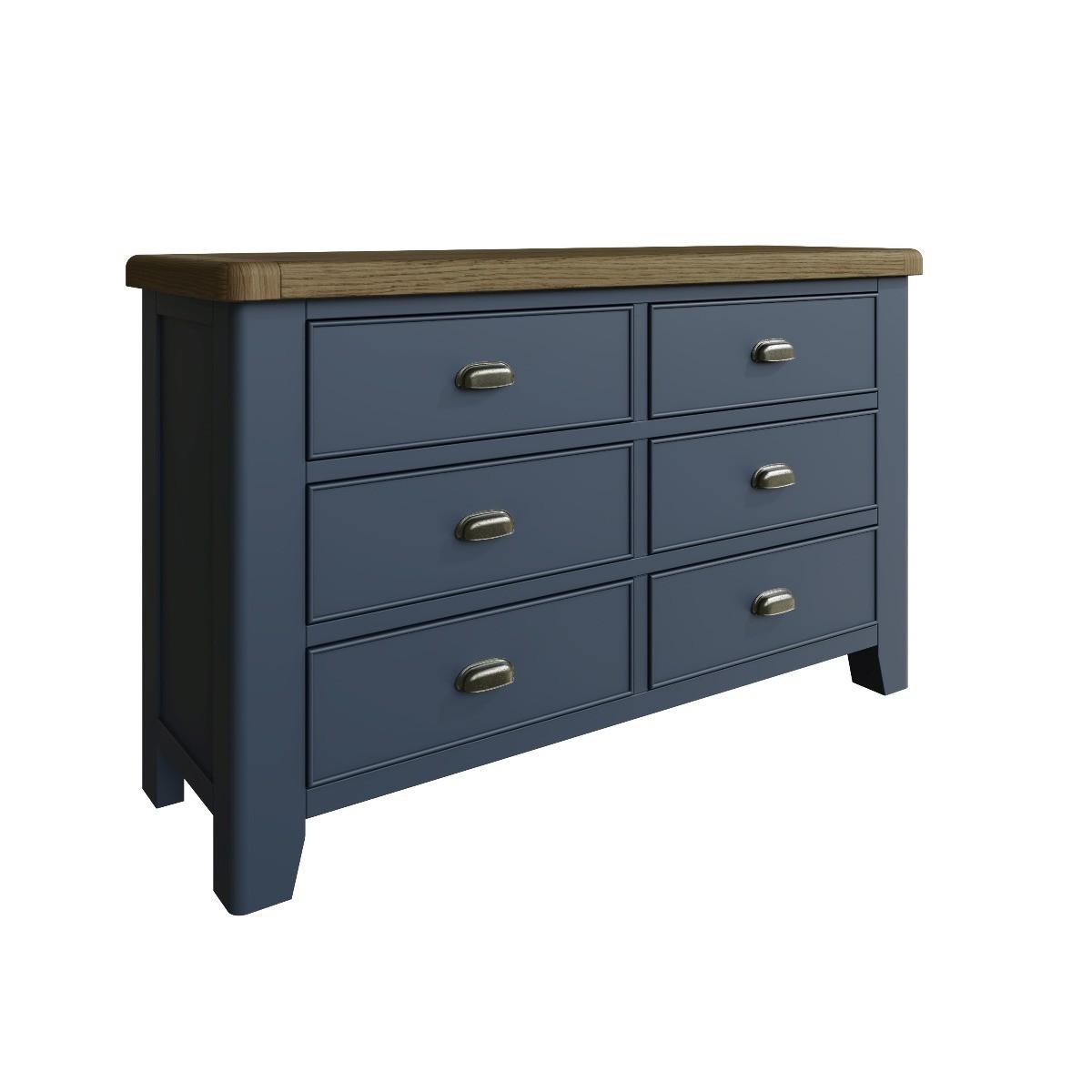 The gorgeous antique oak finish of the Scarlett collection looks stunning in both traditional and contemporary bedrooms. Not just beautiful, but also robustly constructed from the durable combination of solid oak, pine, MDF with veneers. Made to last with chunky tops and gently rounded corners, these pieces are family favourites– chests all ages love. Crafted from oak, oak veneers, pine and MDFLovely antique oak finish. Six dovetailed drawers with pewter effect cup handles. Strong tapered legs