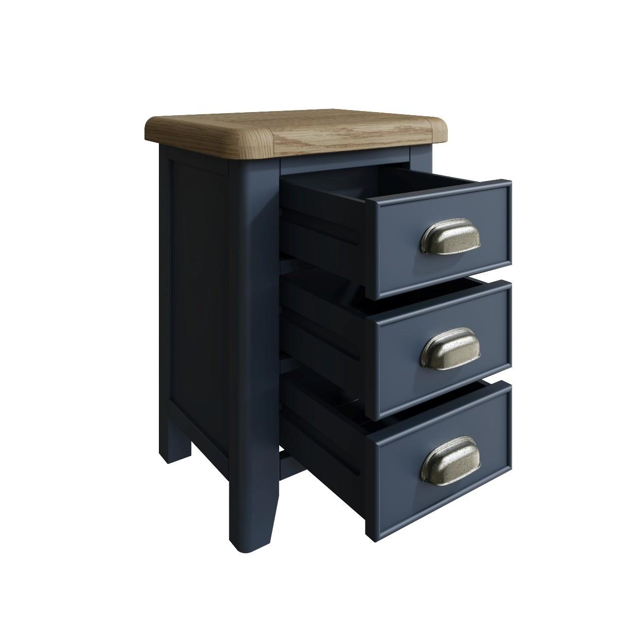 The gorgeous antique oak finish of the Scarlett collection looks stunning in both traditional and contemporary bedrooms. Not just beautiful, but also robustly constructed from the durable combination of solid oak, pine, MDF with veneers. Made to last with chunky tops and gently rounded corners, these pieces are family favourites– bedsides all ages love. Crafted from oak, oak veneers, pine and MDFLovely antique oak finish. Three dovetailed drawers with pewter effect cup handles. Strong tapered legs