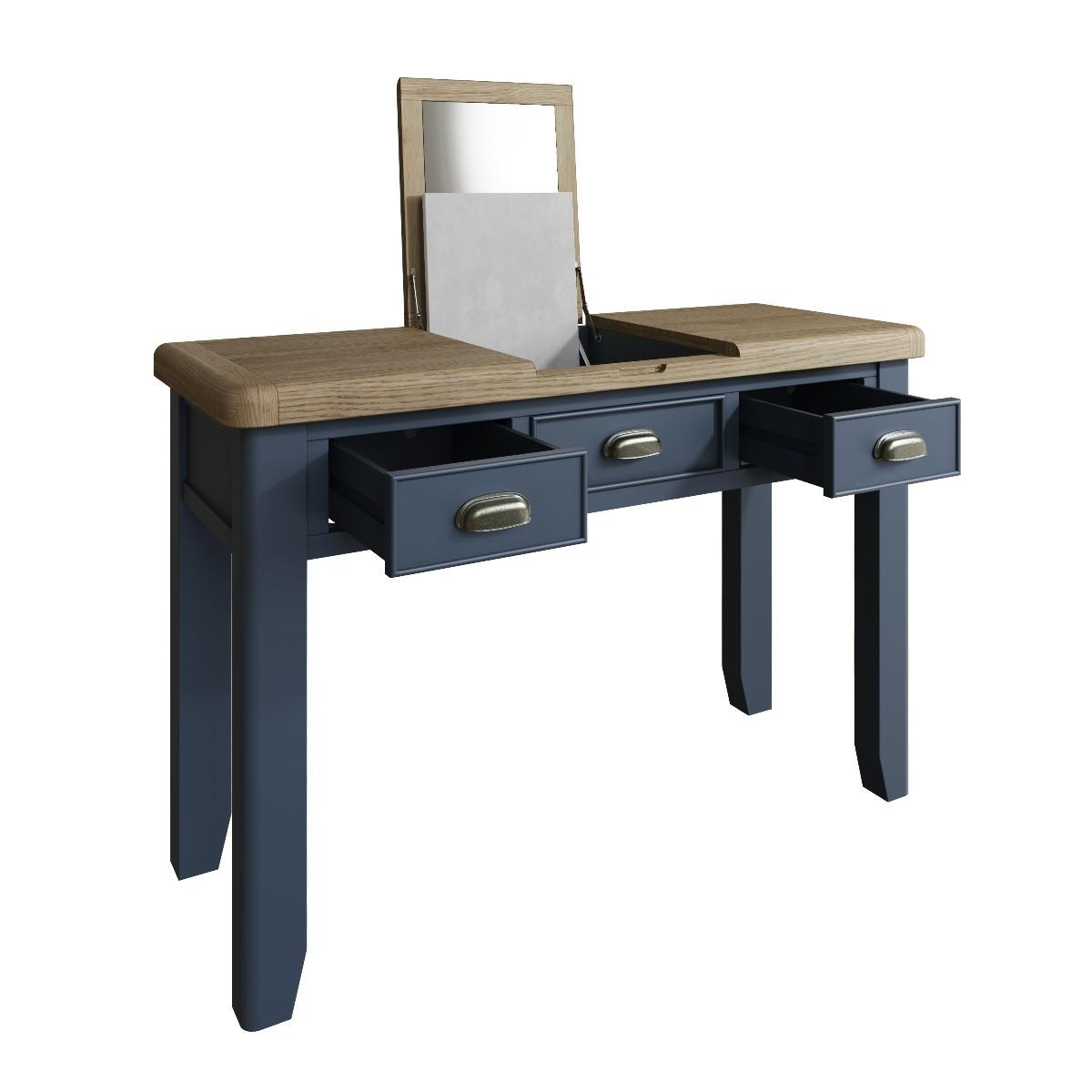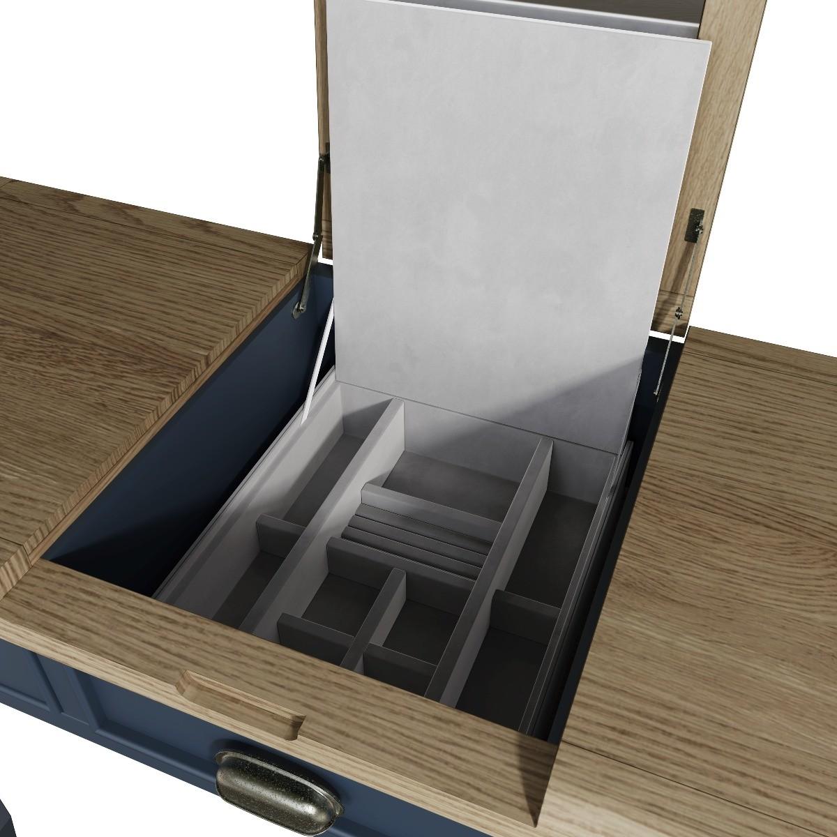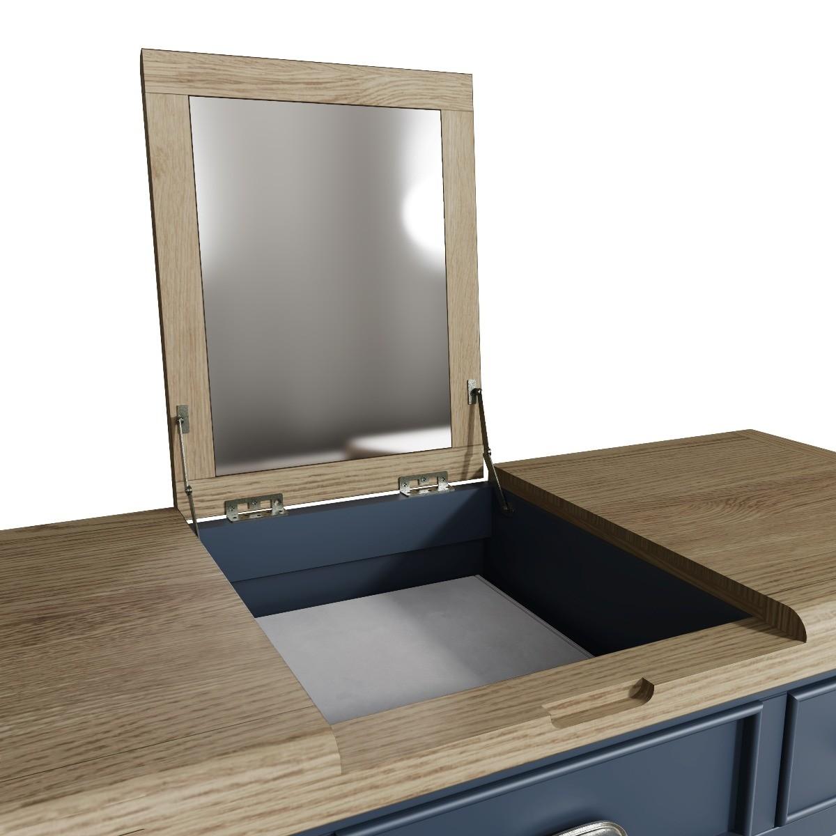 The gorgeous antique oak finish of the Scarlett collection looks stunning in both traditional and contemporary bedrooms. Not just beautiful, but also robustly constructed from the durable combination of solid oak, pine, MDF with veneers. Made to last with chunky tops and gently rounded corners, these pieces are family favourites– dressing tables with hidden mirrors and jewellery boxes all ages love. Crafted from oak, oak veneers, pine and MDF in antique finish. Exquisite built-in felt jewellery box. Hinged mirror that flips up in the central section. Three dovetailed drawers with pewter effect cup handles