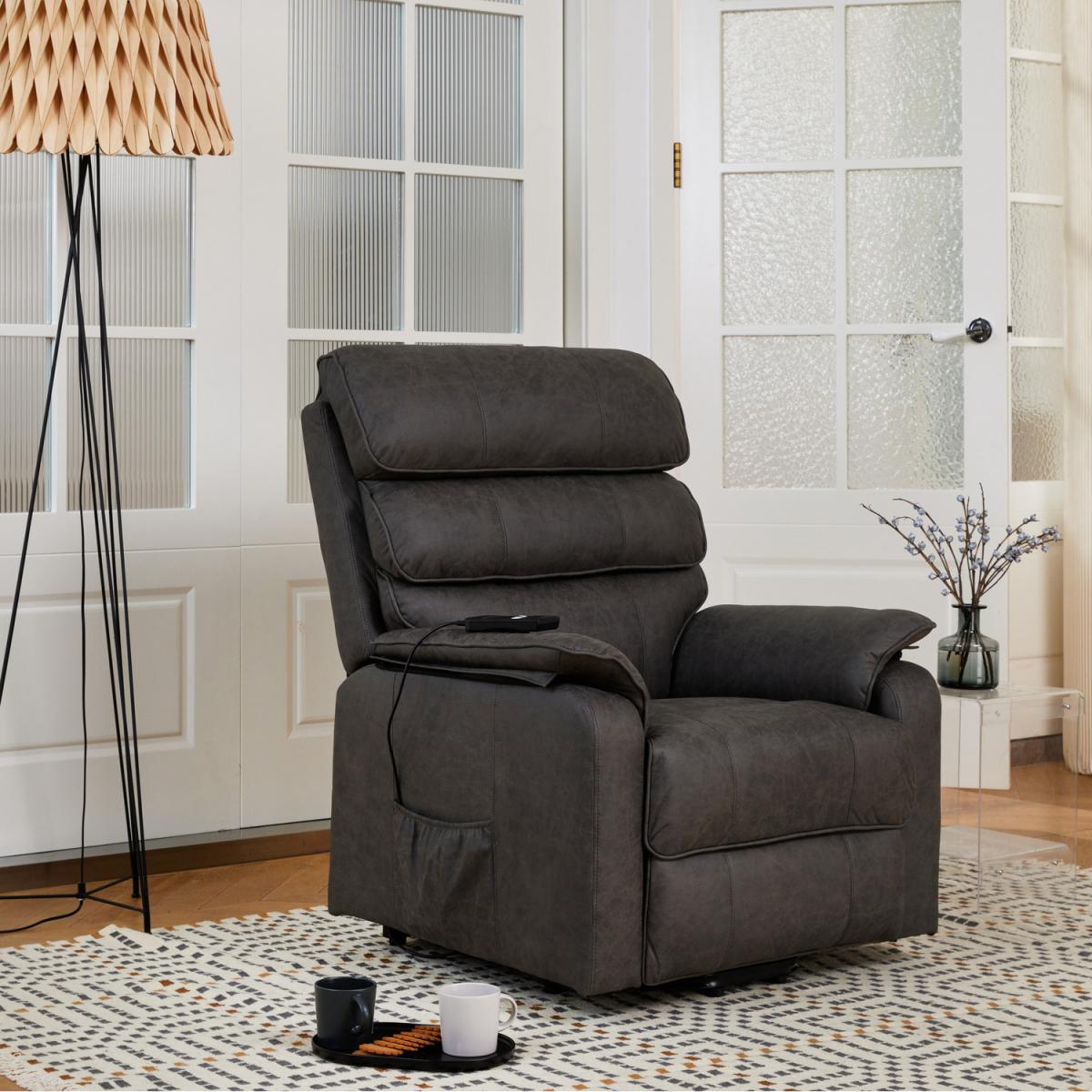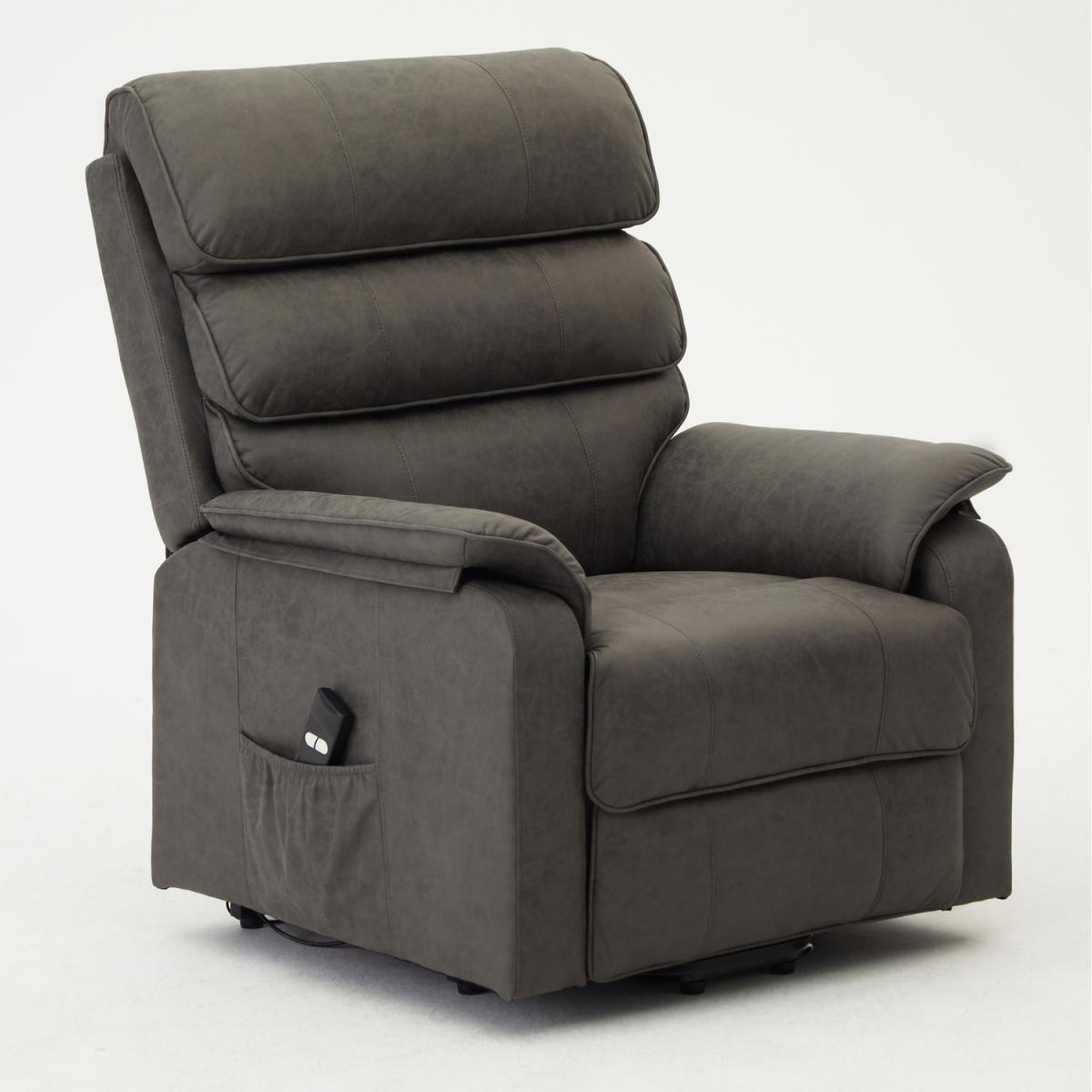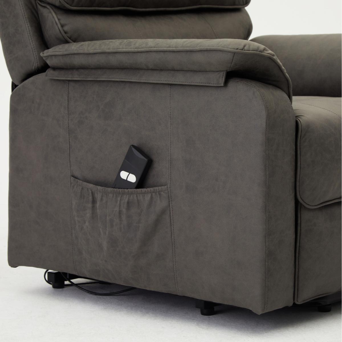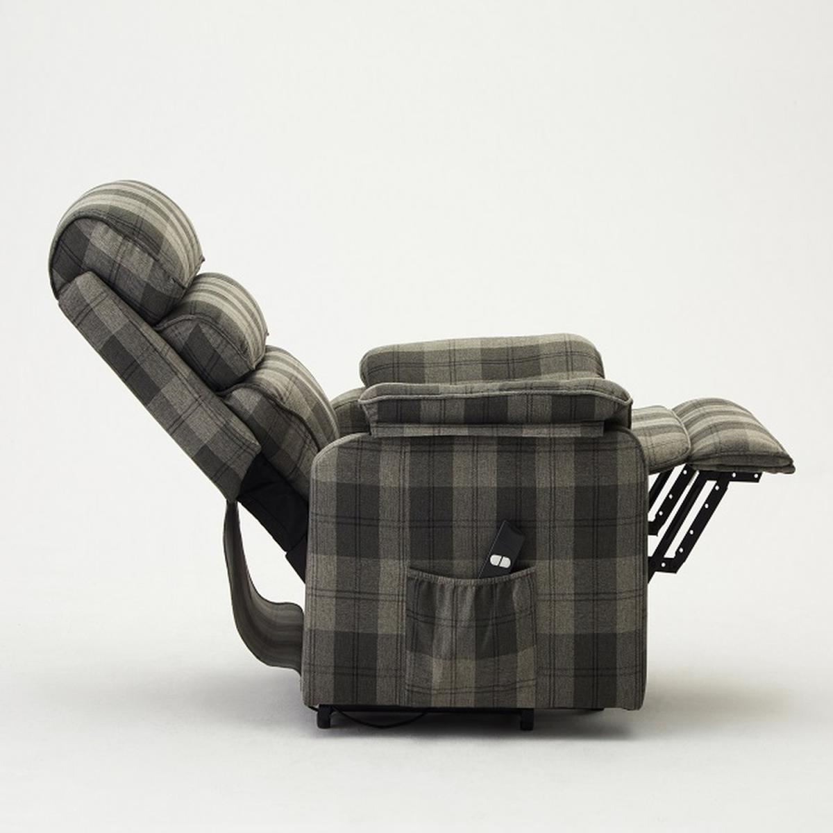 Introducing SCARLETT a rise and recline armchair with generously filled pillow style backrests which offer great lumbar support. The electric recline is operated by remote control, which also has its own storage pocket down the armrest. SCARLETT is a padded, statement foam filled Tilt & Lift Recliner made from Grey Tartan or Air Leather, a woven fabric made to look and feel like leather but retains the breathability of woven fabric. SCARLETT tilt and lift recliner chairs are the perfect chair to give you a helping hand when you really want to relax. Fully electric, these armchairs have a remote to fully control every aspect of the chair. From simply lifting the footrest, or tilting the back these armchairs lift completely off the ground to aid you into and out of the chair with complete and utter ease. Due to differences in lighting and screen resolution on laptop, desktop, and mobile devices, some fabrics may appear somewhat different in person. To get the most out of your item we recommend gently cleaning with the upholstery attachment of your vacuum cleaner or using a soft hand brush once per week. Delivered by our friendly couriers within 1-3 working days. The courier will deliver to the main door of the building only on an all-day 7am to 7pm service with no time slots provided.