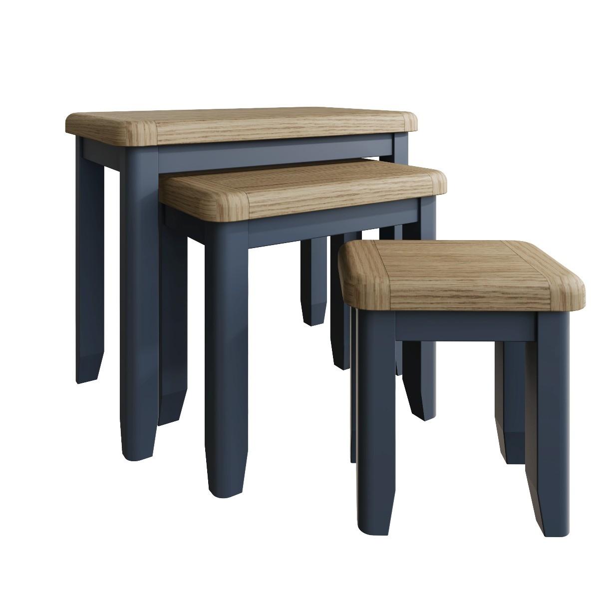 The gorgeous antique oak finish of the Scarlett collection looks stunning in both traditional and contemporary homes. Not just beautiful, but also robustly constructed from the durable combination of solid oak, pine, MDF with veneers. Made to last with chunky tops and gently rounded corners, these pieces are family favourites– stacking tables all ages love. Three stacking tables - pull out when needed. Crafted from oak, oak veneers, pine and MDFLovely antique oak finish. Solid tapered legs